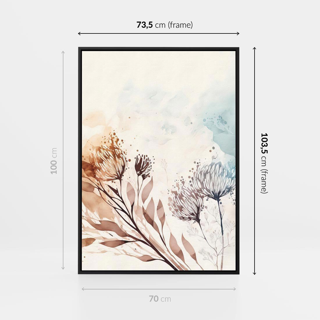Obraz w ramie 70x100 - Nostalgiczne tańce pędzla - akwarelowe kwiaty, gałęzie - rama czarna