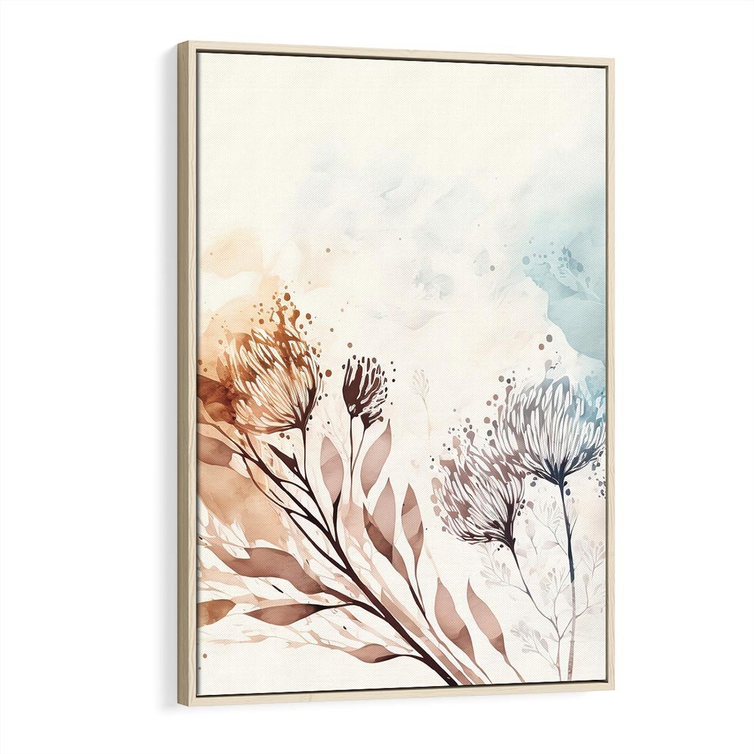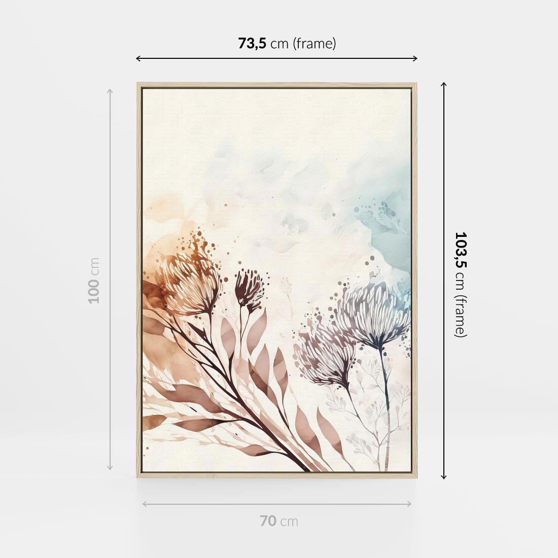 Obraz w ramie 70x100 - Nostalgiczne tańce pędzla - akwarelowe kwiaty, gałęzie - rama drewno