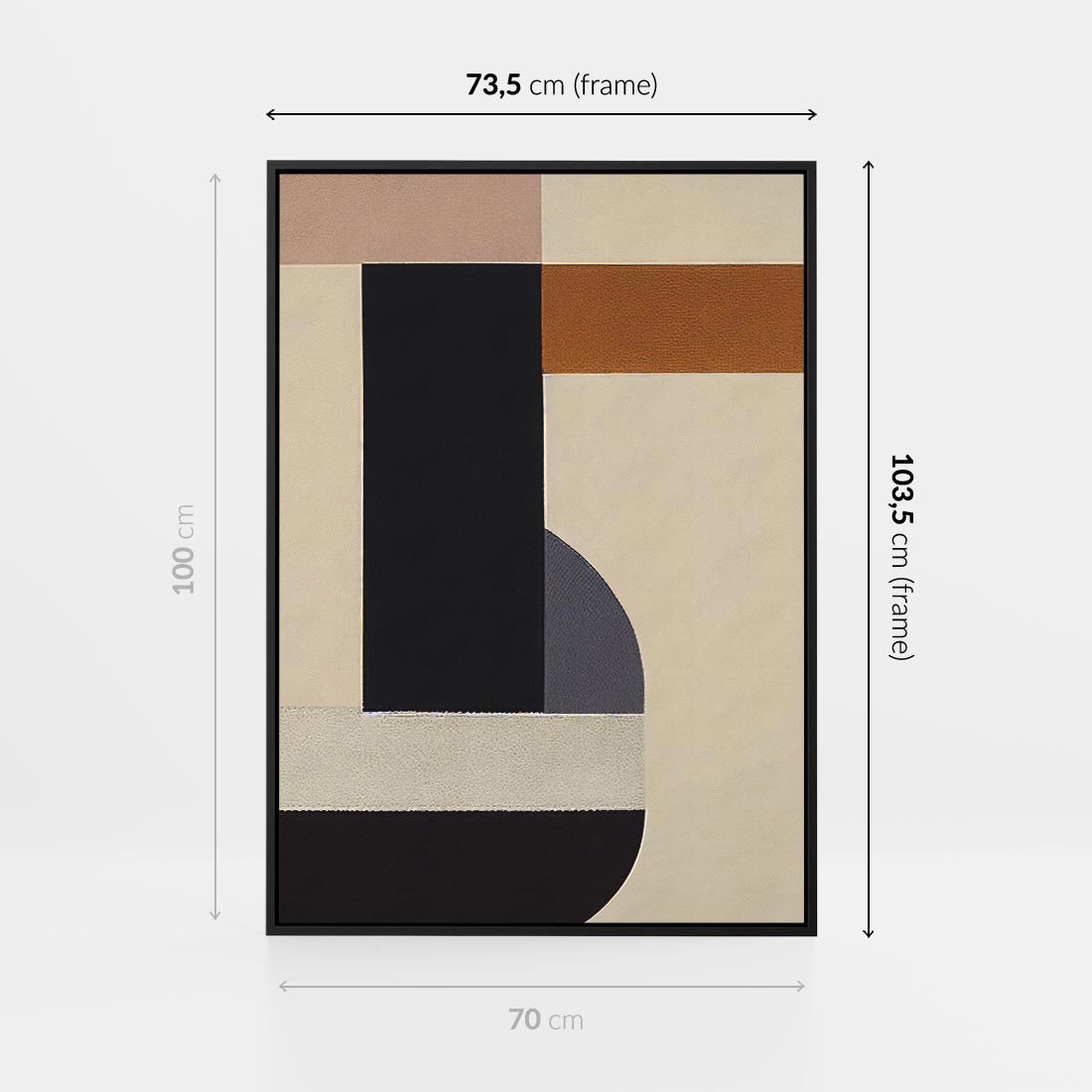 To nowoczesny obraz, w którym dominują geometryczne pasy w odcieniach beżu, brązu i camel. Jego minimalistyczny design i wyrafinowany styl doskonale wpasują się w nowoczesne wnętrza. Geometryczne kompozycje tworzą harmonijne połączenie prostoty i elegancji, wzbogacając przestrzeń swoim subtelnie ziemistym wyglądem.
