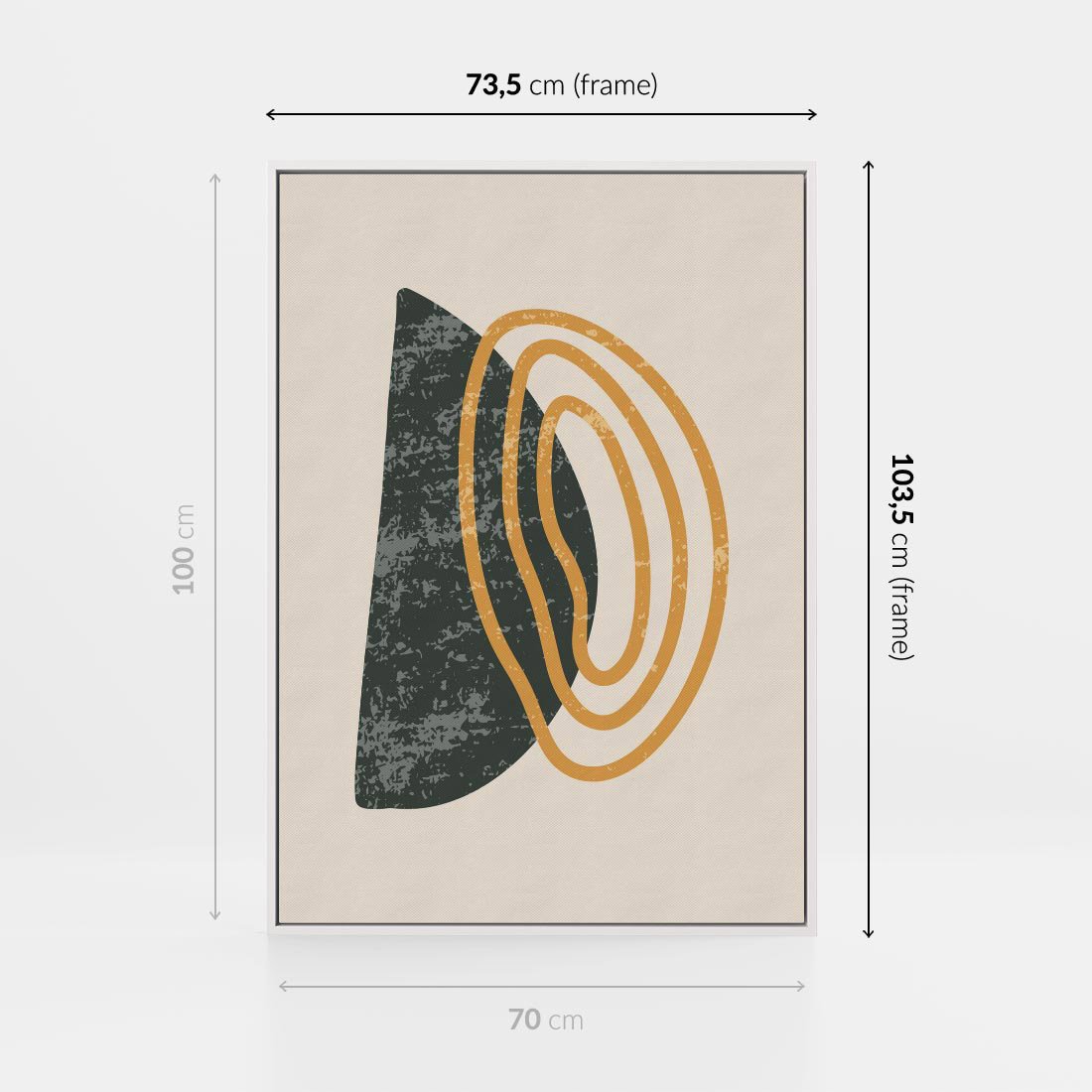 Nasz nowoczesny plakat to abstrakcyjne kształty w stonowanych brązowych odcieniach. To połączenie minimalizmu i nowoczesnej sztuki tworzy spokojną, lecz wyrazistą kompozycję, idealną do wnętrz poszukujących harmonii i subtelnego wyrażenia artystycznego.