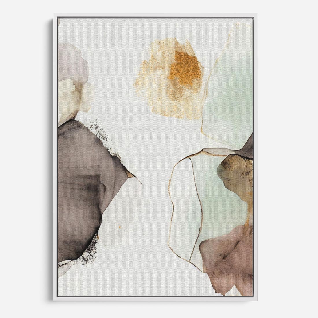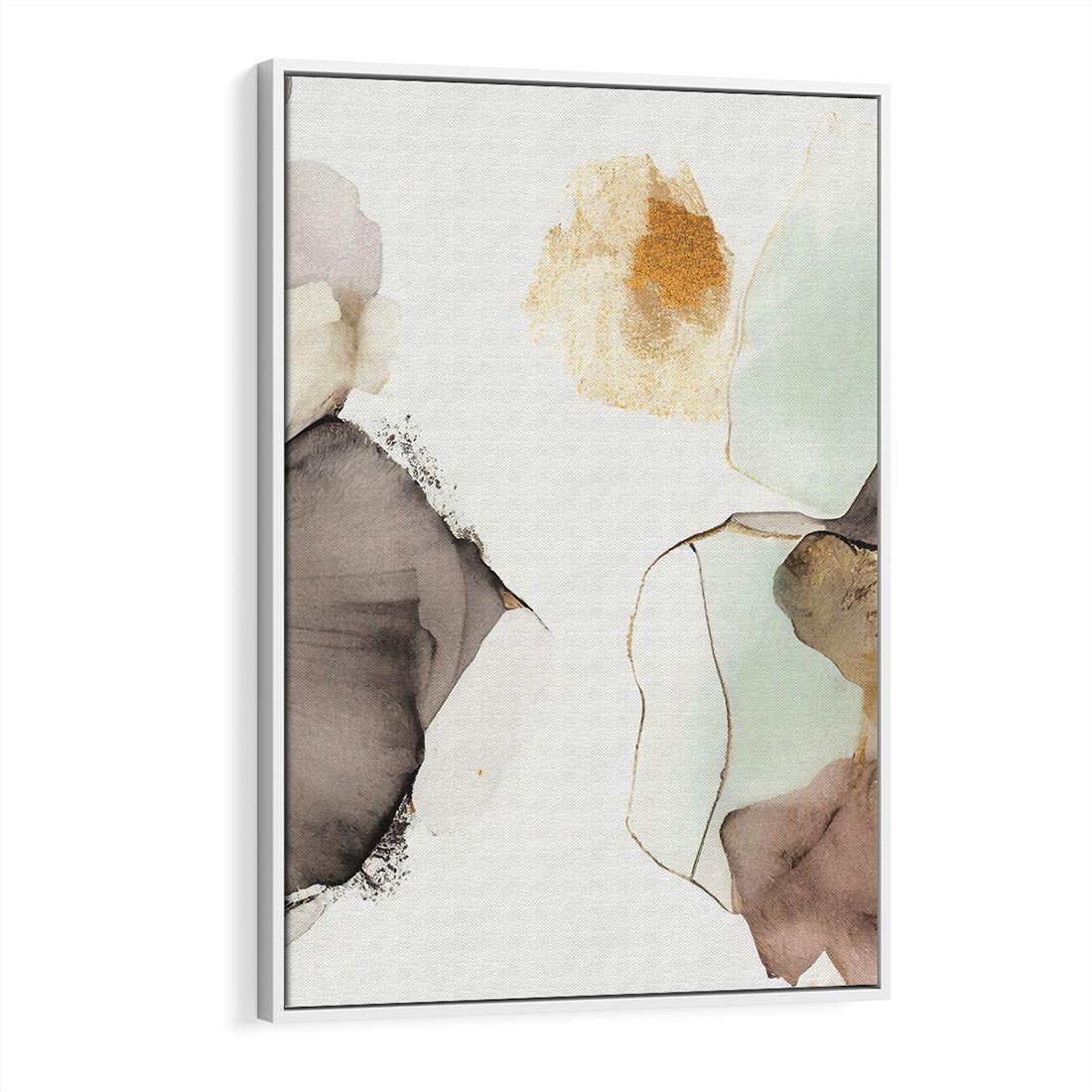 Obraz w ramie 70x100 - Nowoczesne Elegancje - akwarela, złote linie i plamy - rama biała