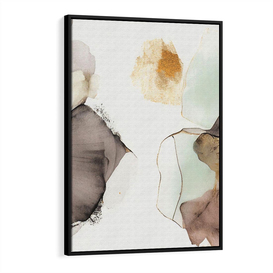 Obraz w ramie 70x100 - Nowoczesne Elegancje - akwarela, złote linie i plamy - rama czarna