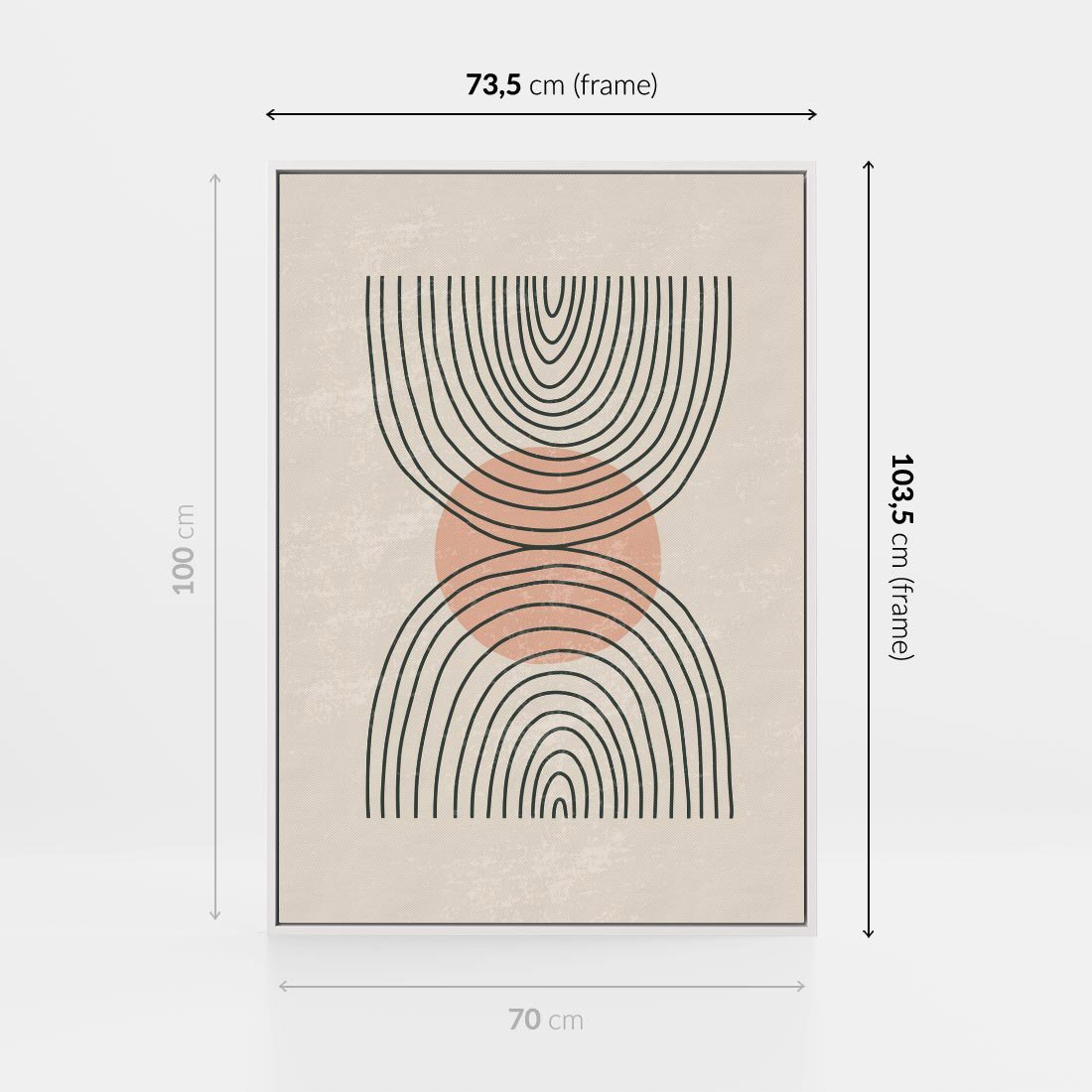 Nasza abstrakcyjna sztuka to połączenie boho kształtów z minimalizmem, idealne dla nowoczesnych wnętrz. To wyjątkowe dzieło wprowadza do Twojej przestrzeni oryginalność i nowoczesność, tworząc jednocześnie spokojną i wyrafinowaną kompozycję.
