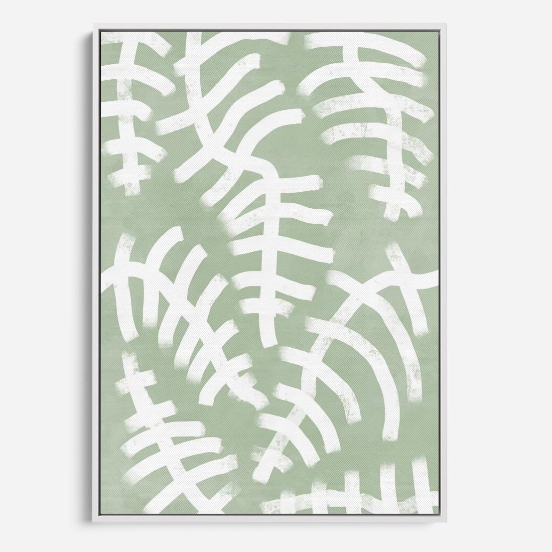 Obraz w ramie 70x100 - Oaza Zieleni - zielona abstrakcja, zgaszona zieleń - rama biała
