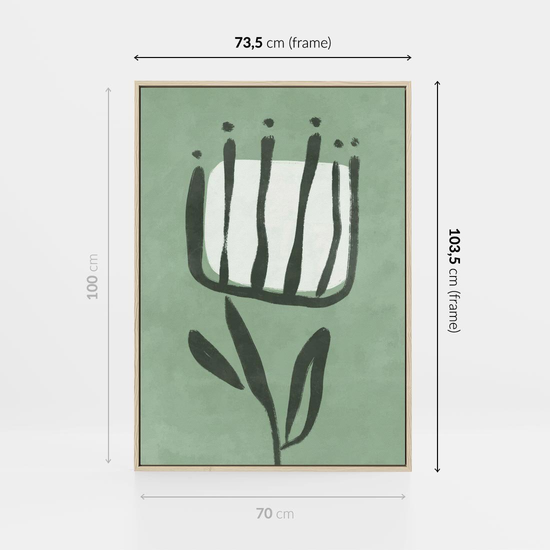 Zielona abstrakcja o zgaszonych odcieniach zieleni to idealny minimalistyczny plakat pasujący do skandynawskiego designu. Delikatność kolorów tworzy spokojną atmosferę, doskonale wpasowując się w nowoczesne wnętrza.