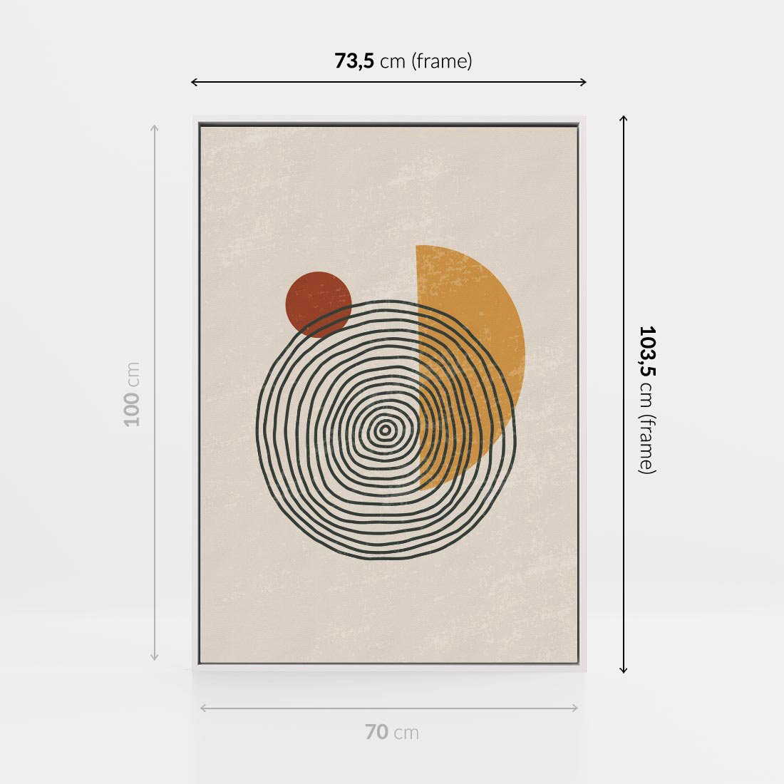 Nasza nowoczesna sztuka to połączenie minimalistycznych linii i kształtu koła w stonowanych beżowych odcieniach. To wyjątkowe dzieło sztuki wprowadza do Twojej przestrzeni subtelność i nowoczesność, tworząc spokojną i harmonijną kompozycję.