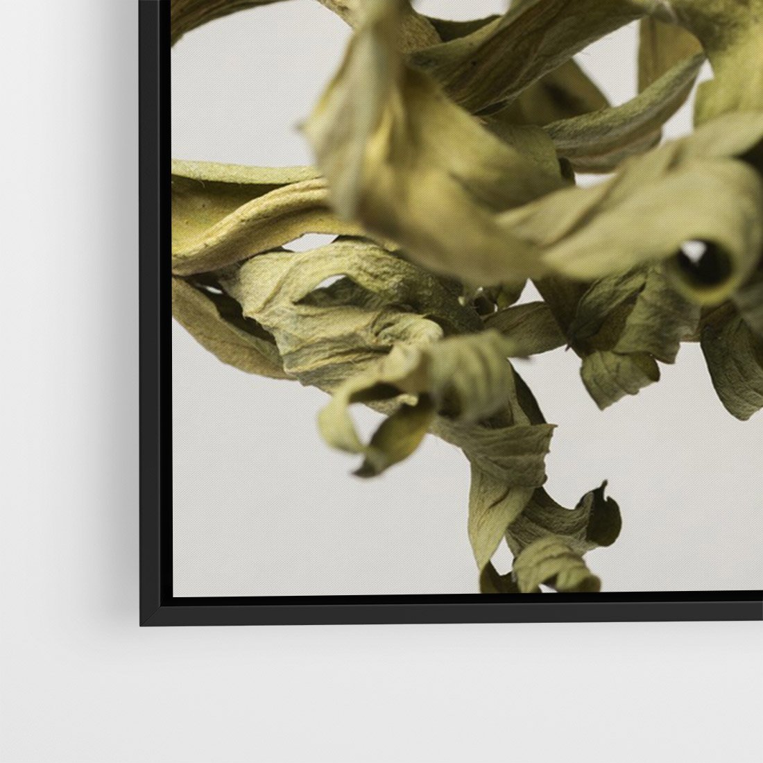 Przenikający obraz na płótnie ukazuje suche trawy i liście, oddając moment przejścia z pory deszczowej do pory suchej. Ich złociste barwy i delikatny ruch tworzą atmosferę zmiany i odrodzenia. Dodaj naturalny element do swojego wnętrza za pomocą tego pejzażowego dzieła sztuki.