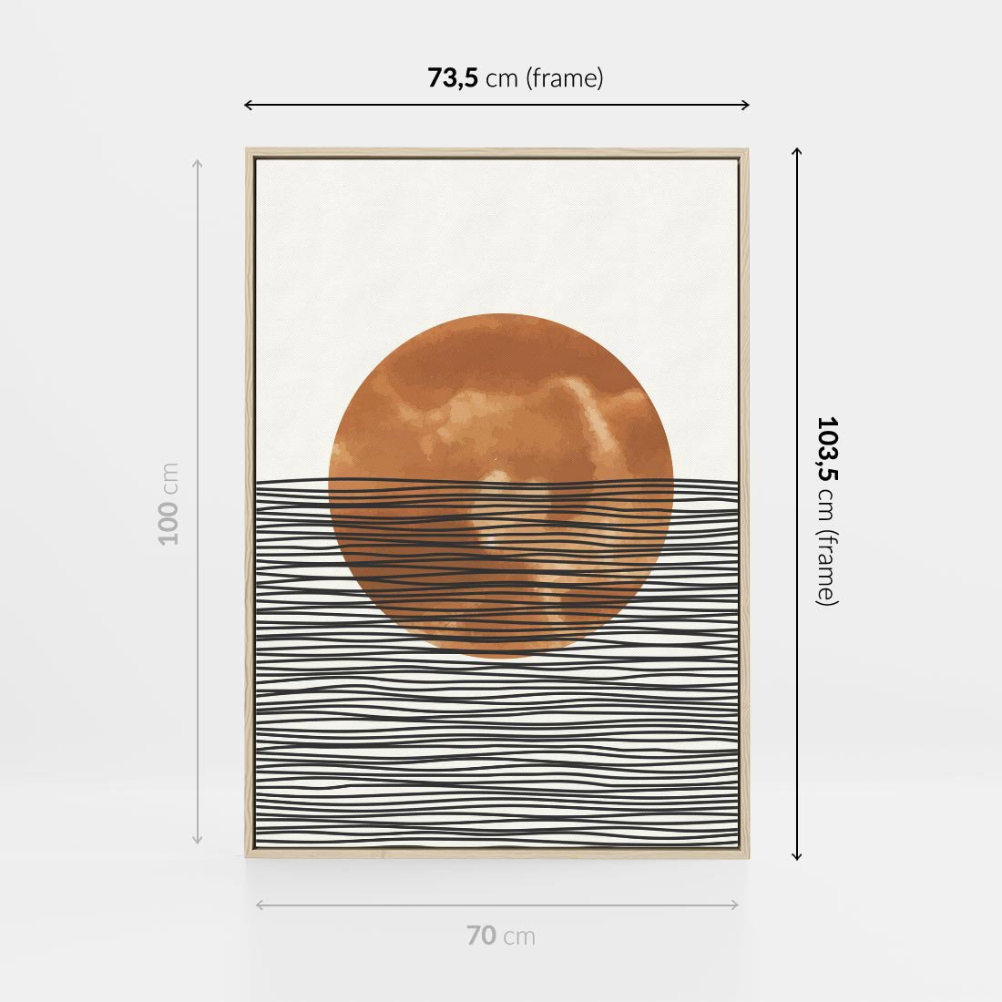 Nasz plakat to boho obraz z geometrycznym miedzianym kołem w delikatnym szkicu. To minimalistyczne połączenie wprowadza do Twojej przestrzeni unikalny charakter boho i nowoczesną estetykę, tworząc spokojny i wyrafinowany akcent artystyczny.