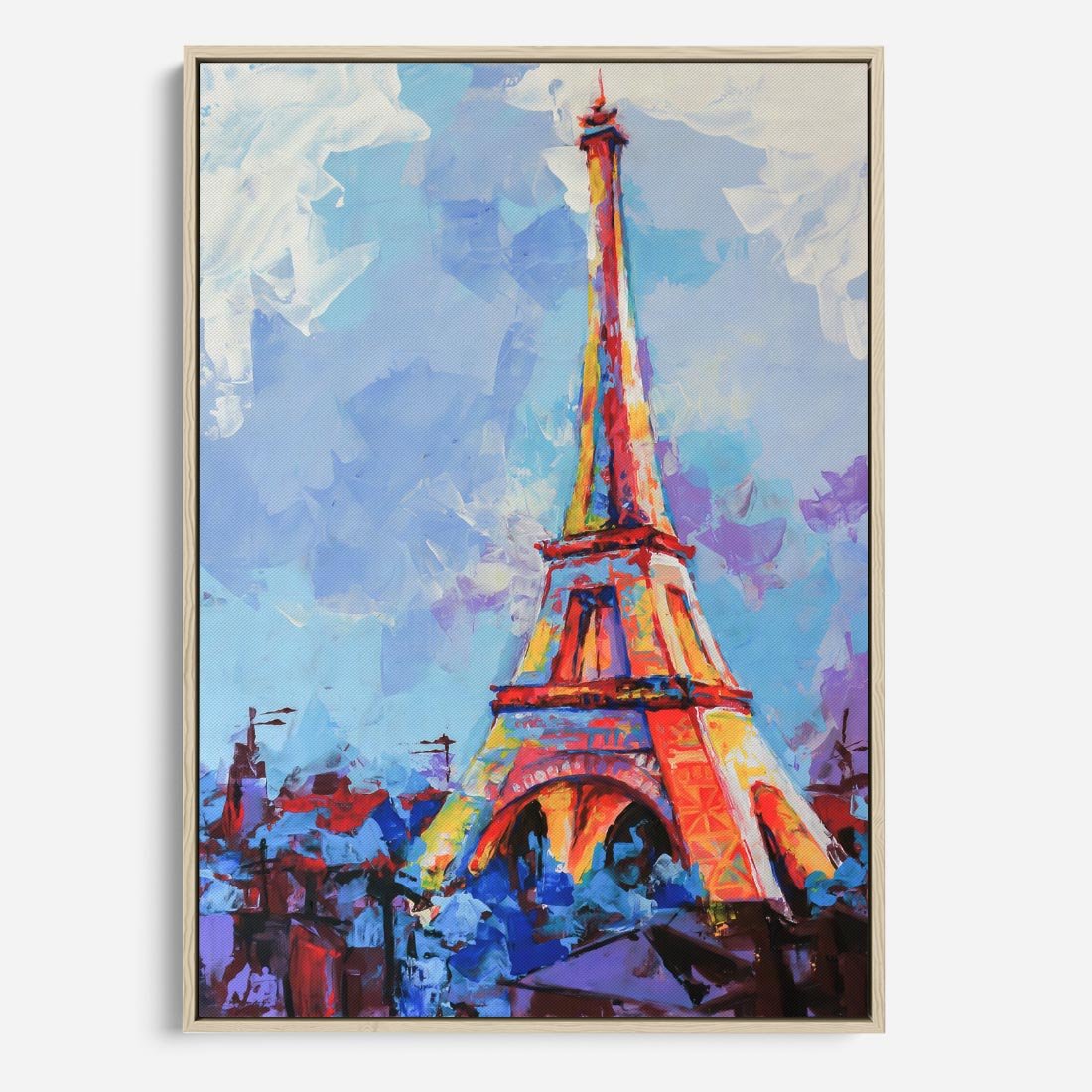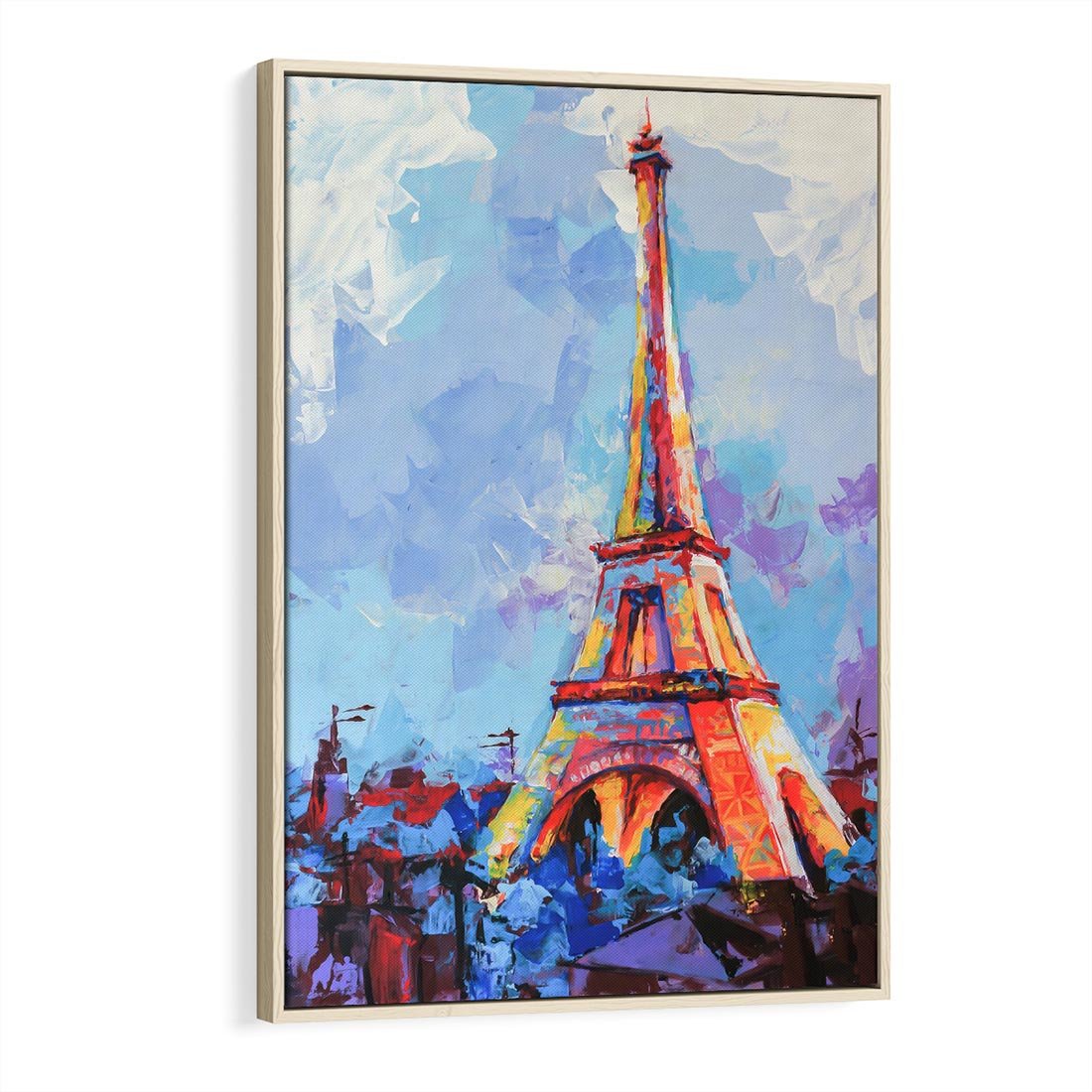 Obraz w ramie 70x100 - Paryska Wieża - olejny abstrakcyjny obraz, wieża eiffla - rama drewno