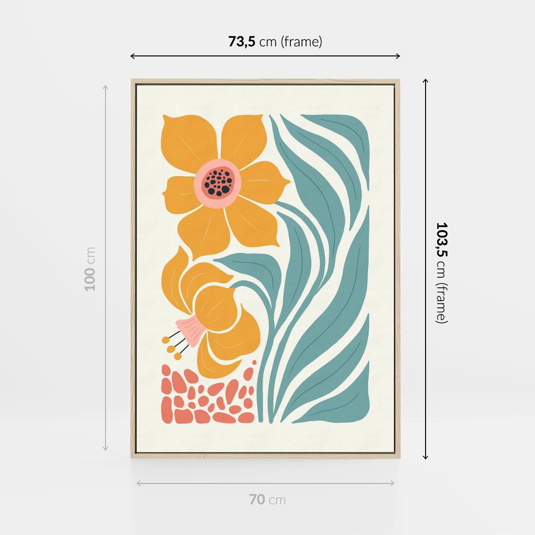 Ten nowoczesny plakat łączy kwiatowe motywy z delikatnymi pastelowymi kolorami, tworząc wyjątkową wizję piękna. Sztuka ta wprowadzi subtelność i harmonię do Twojego wnętrza.