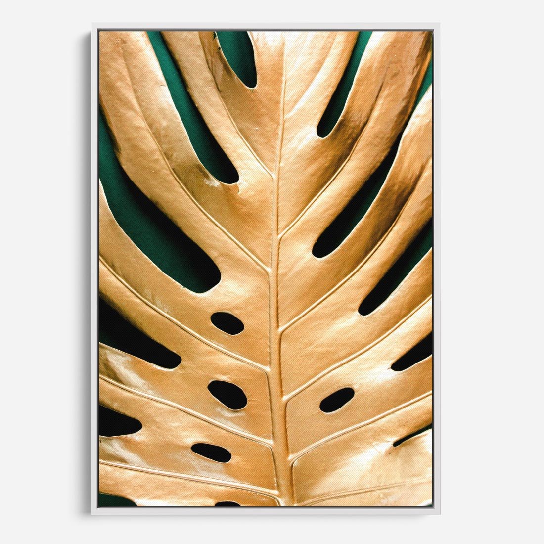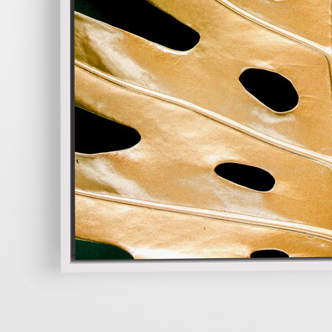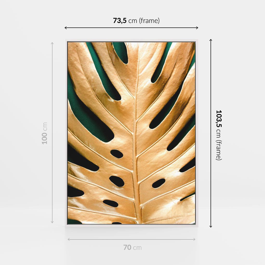 Odkryj piękno i styl złotych liści monstera na obrazie. Dodaj swojemu wnętrzu wyjątkowego uroku i odczuj elegancję, która emanuje z tej minimalistycznej kompozycji.