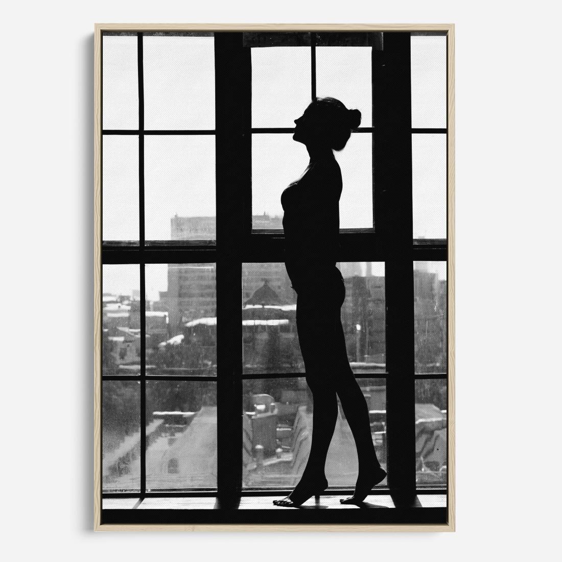 To ujęcie to klasyczne czarno-białe retro zdjęcie ukazujące piękną kobietę stojącą przed oknem. Jej piękna sylwetka kontrastuje z tłem, tworząc atmosferę nostalgii i elegancji. To zdjęcie jest hołdem dla stylu retro i epoki, która kultywowała klasykę i wdzięk. Idealnie nadaje się jako dekoracja do wnętrz urządzonych w klasycznym lub retro stylu, dodając im wyjątkowy urok i atmosferę przeszłości. To także hołd dla piękna ludzkiego ciała i jego wyrazistości, które transcenduje czas.