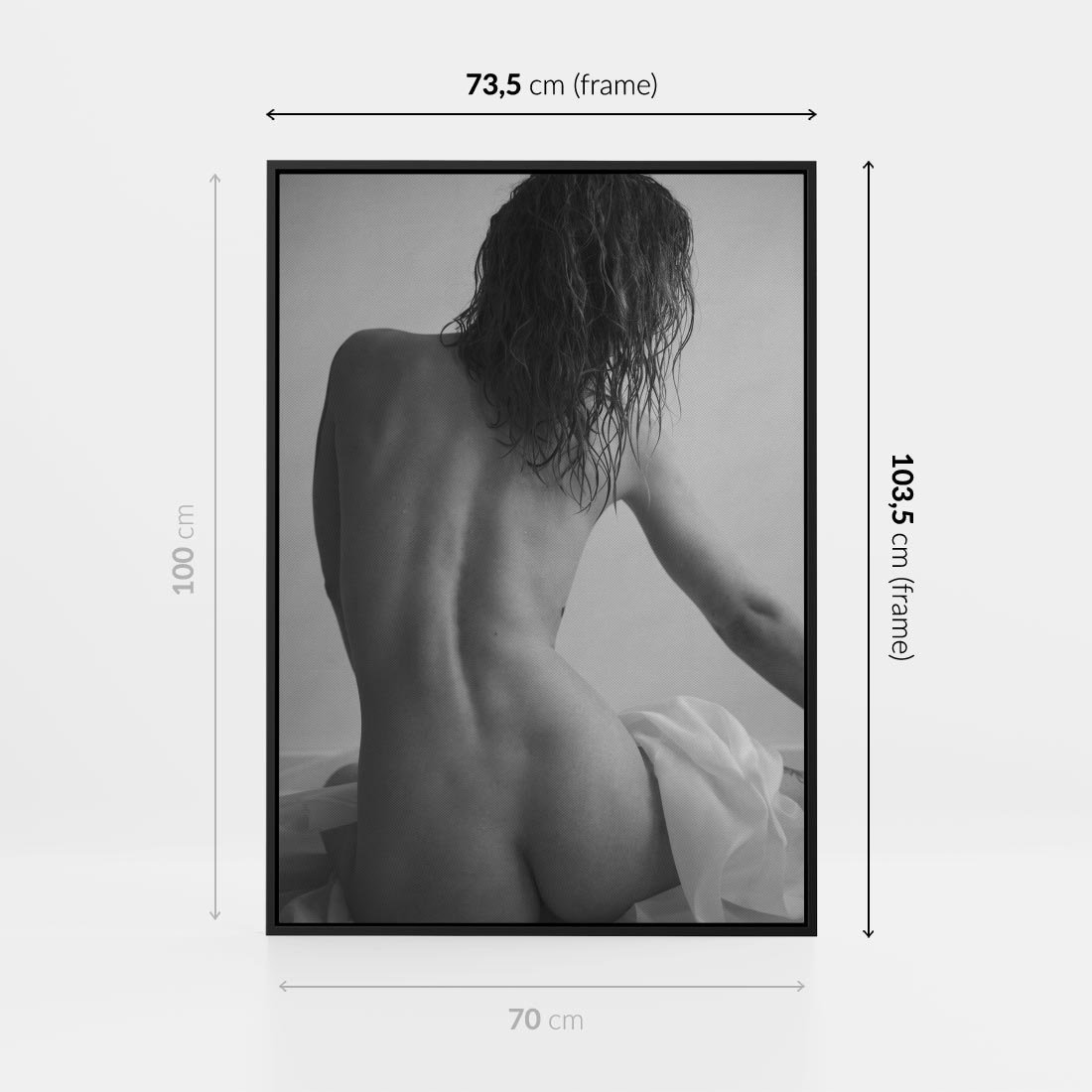 Obraz w ramie 70x100 - Piękno o Poranku - czarno biała fotografia, akt kobiecy - rama czarna