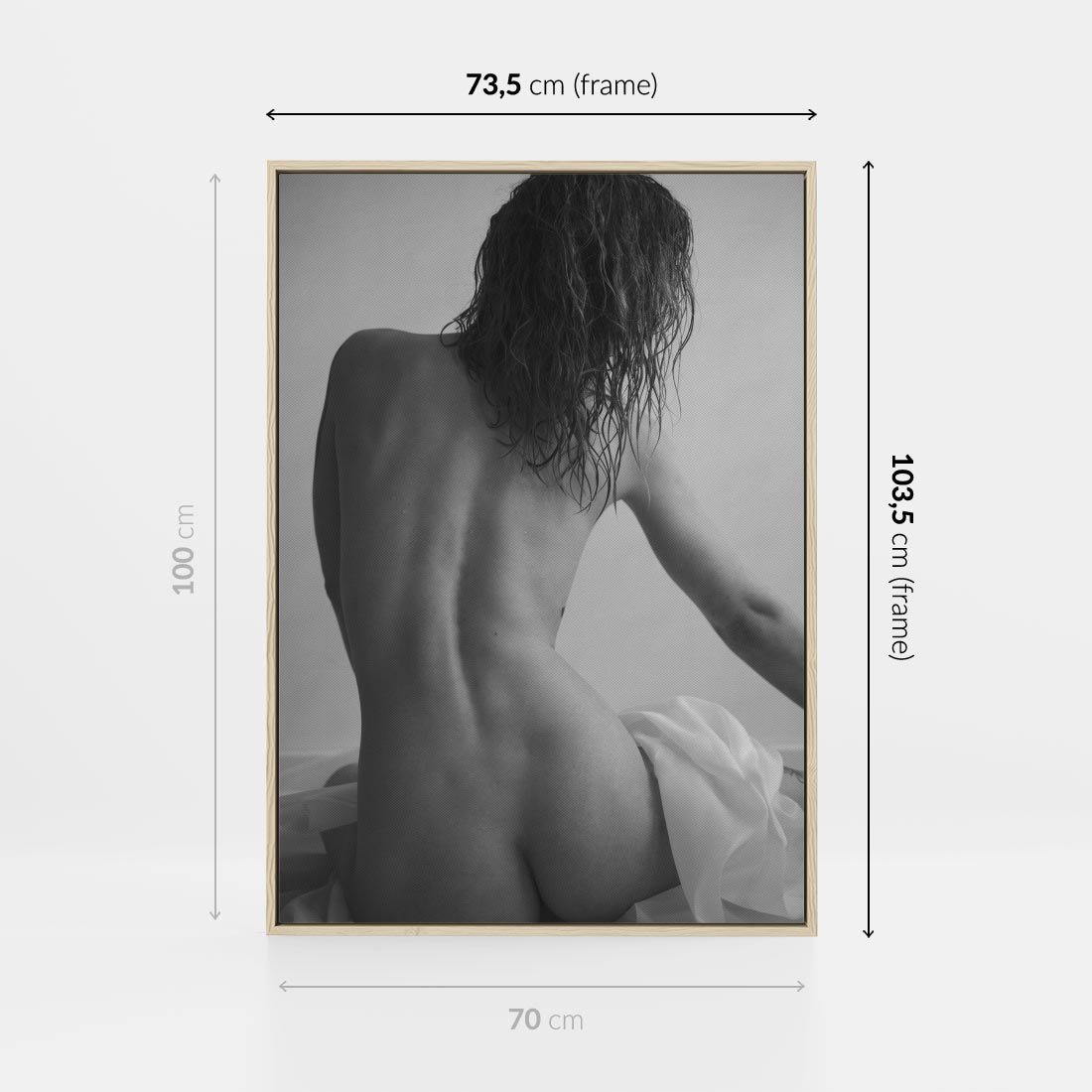 Obraz w ramie 70x100 - Piękno o Poranku - czarno biała fotografia, akt kobiecy - rama drewno