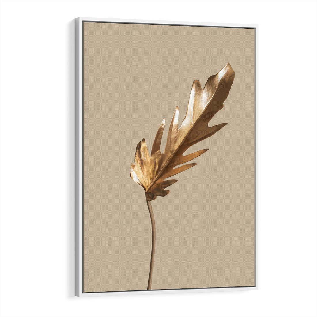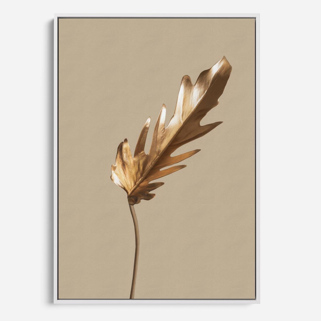 Obraz w ramie 70x100 - Piękno w Detalu - złoty, liść - rama biała