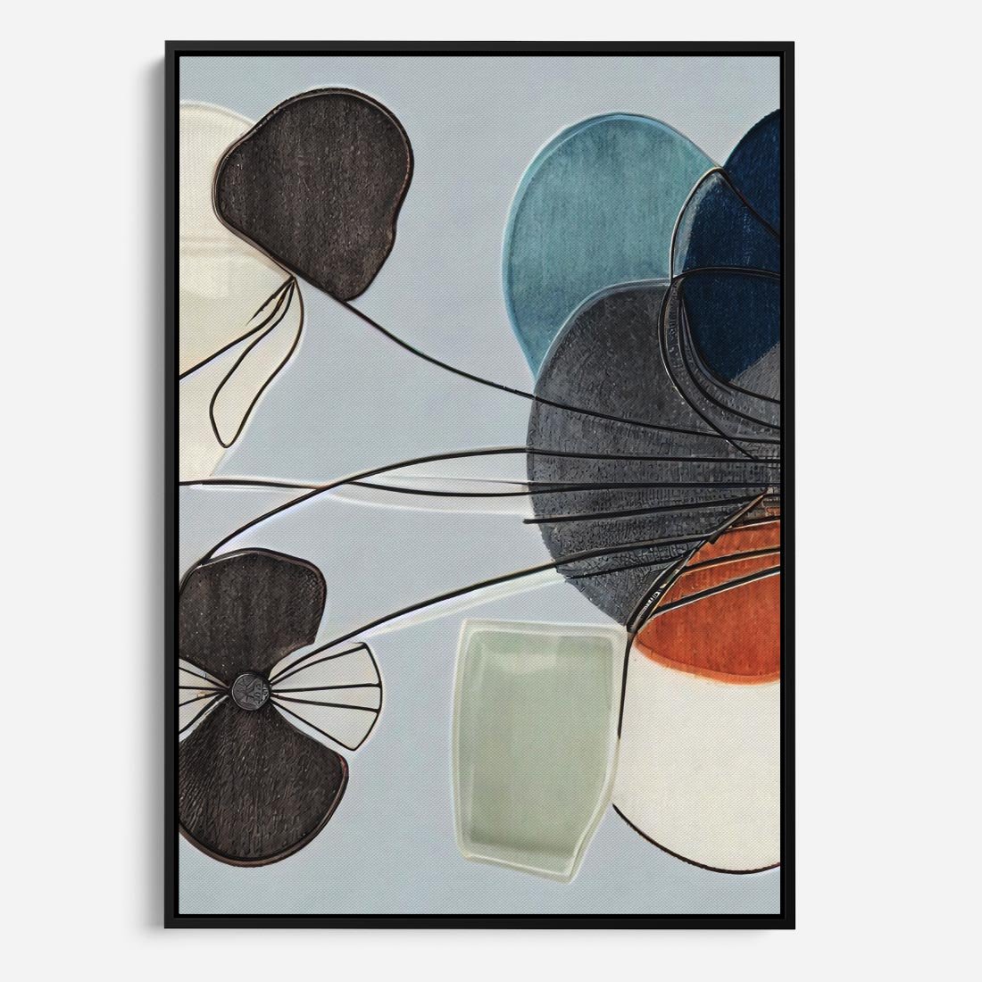 Obraz w ramie 70x100 - Plamy w Niebieskim - sztuka abstrakcyjna, linie - rama czarna