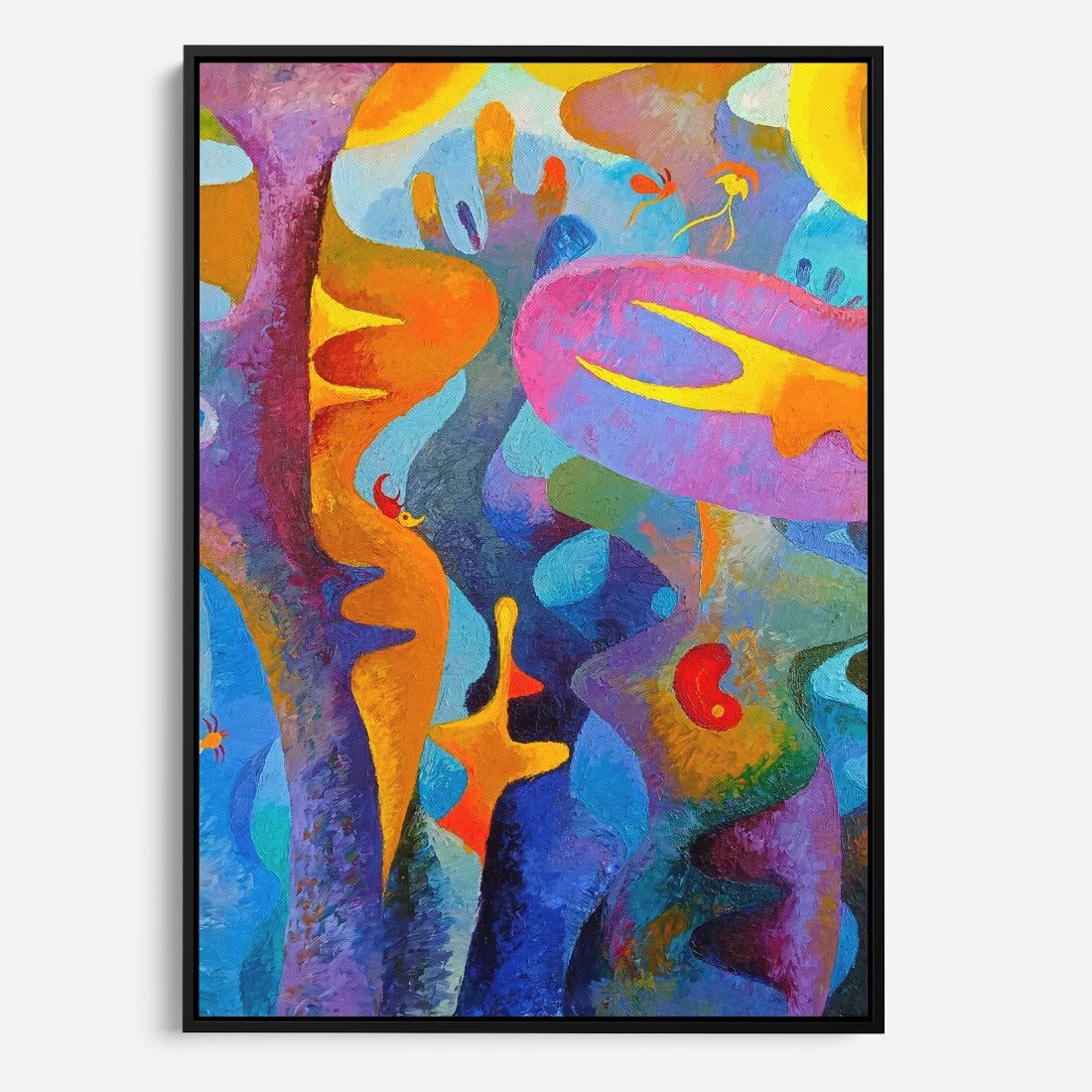 Ta energetyczna abstrakcja ukazuje dziwne formy, które tańczą wśród intensywnych ognistych kolorów. Płomienne Tańce Abstrakcji to eksplozja energii i wyobraźni, gdzie formy i kolory łączą się w dynamiczną harmonię, tworząc abstrakcyjną opowieść o ruchu, pasji i niezwykłości.