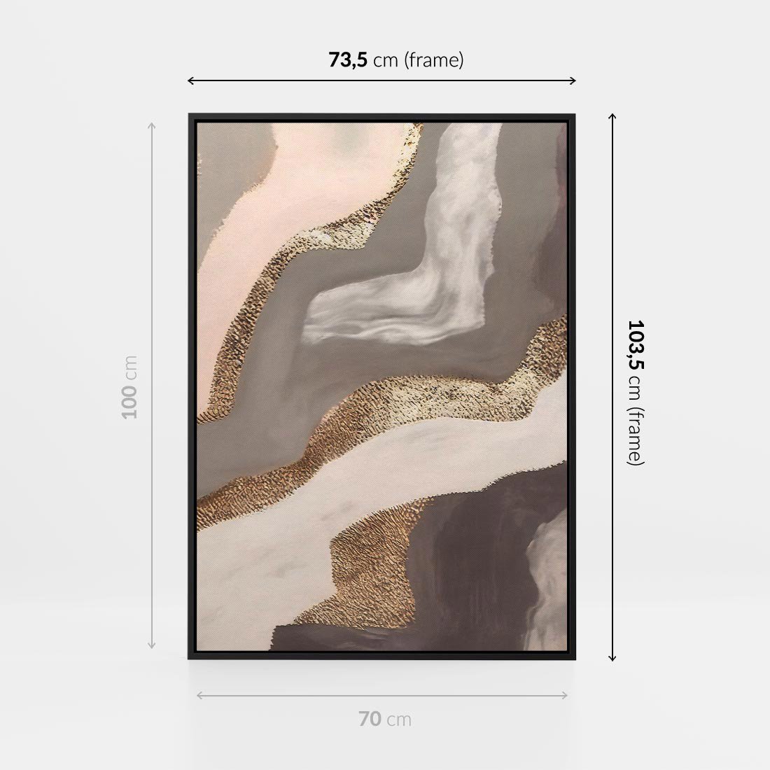 Obraz w ramie 70x100 - Płynne Fale - abstrakcja, neutralne kolory - rama czarna