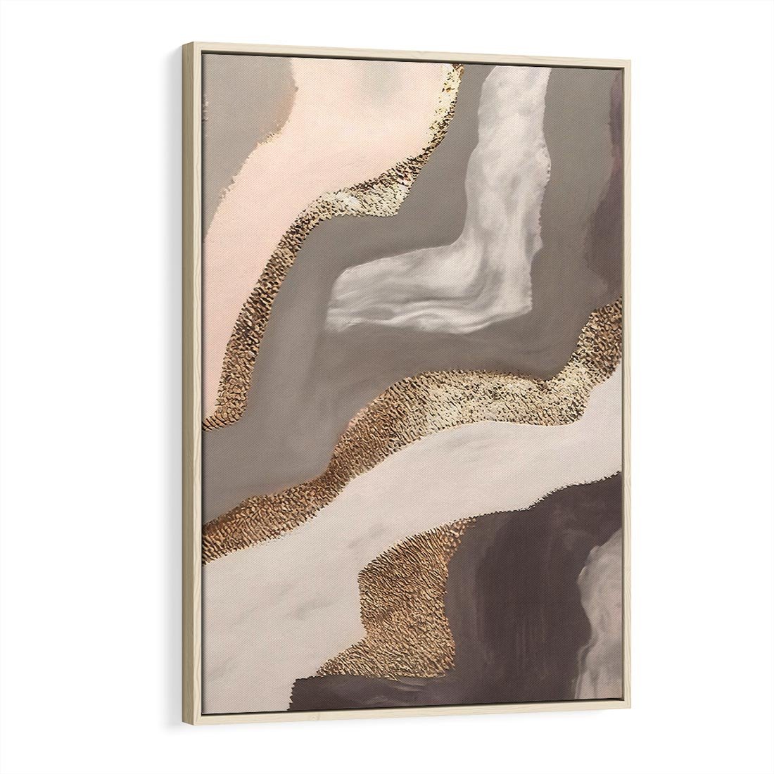 Obraz w ramie 70x100 - Płynne Fale - abstrakcja, neutralne kolory - rama drewno