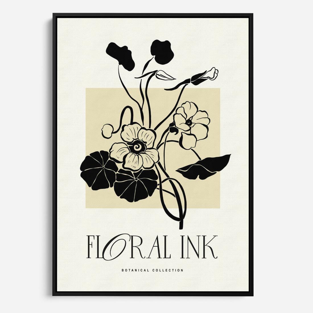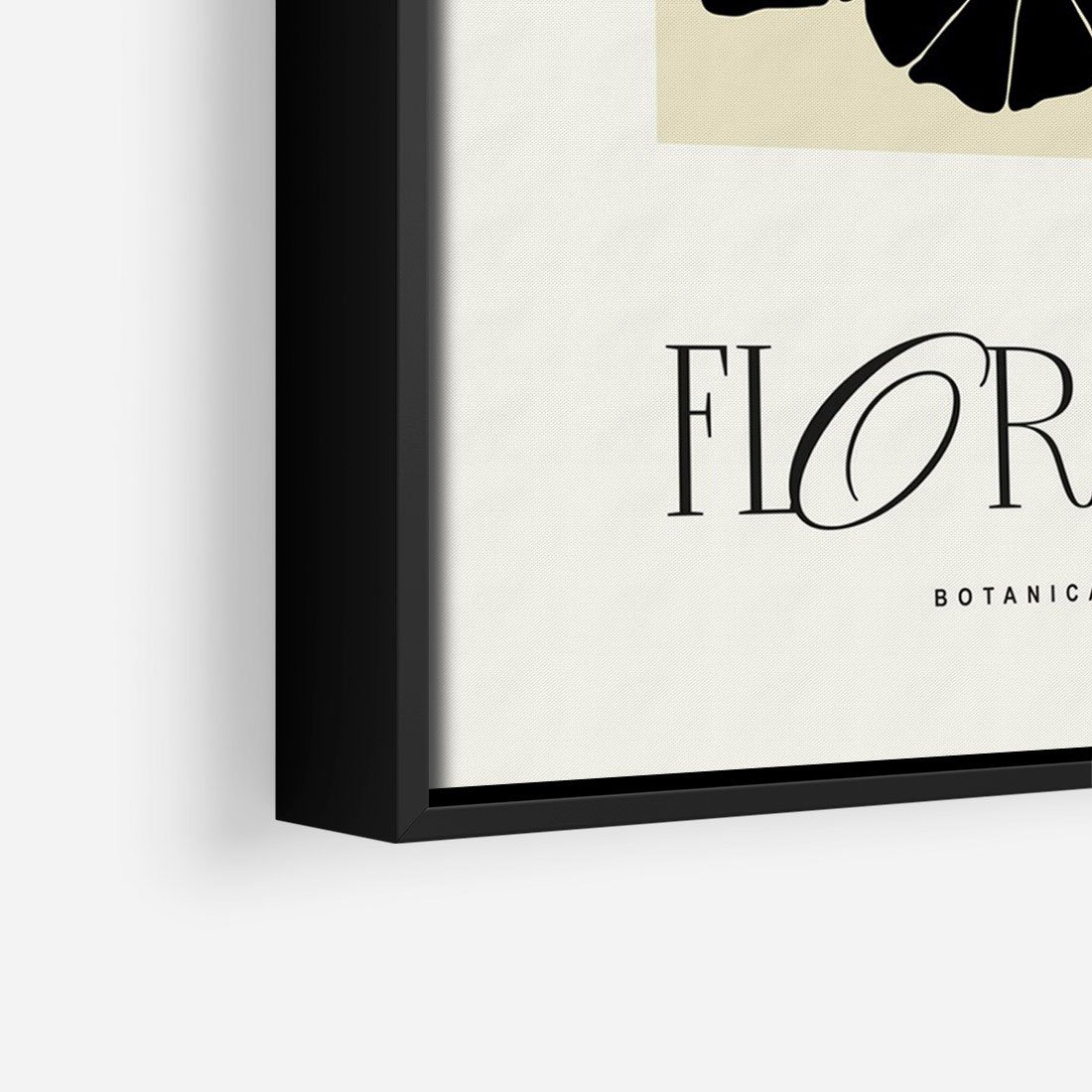 Twórcza harmonia kwiatów i typografii w minimalistycznym stylu. Monochromatyczne kolory i czarny kontur tworzą elegancką prostotę. To doskonały obraz, który wnosi do wnętrza delikatny powiew natury i estetycznego minimalizmu.