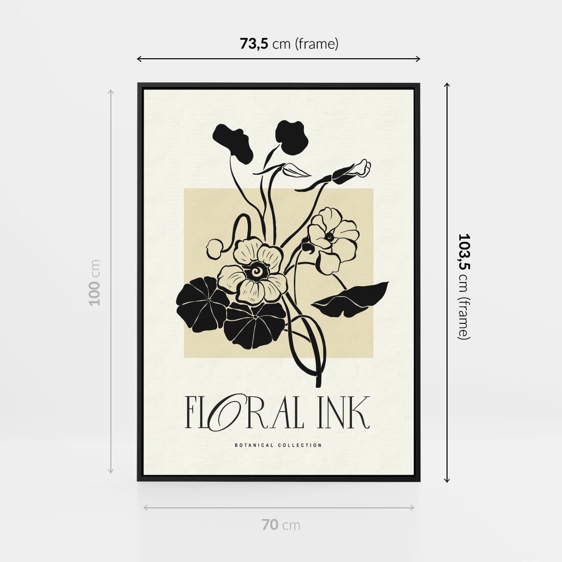 Obraz w ramie 70x100 - Podróż linii kwiatowego czasu - kwiaty, typografia - rama czarna