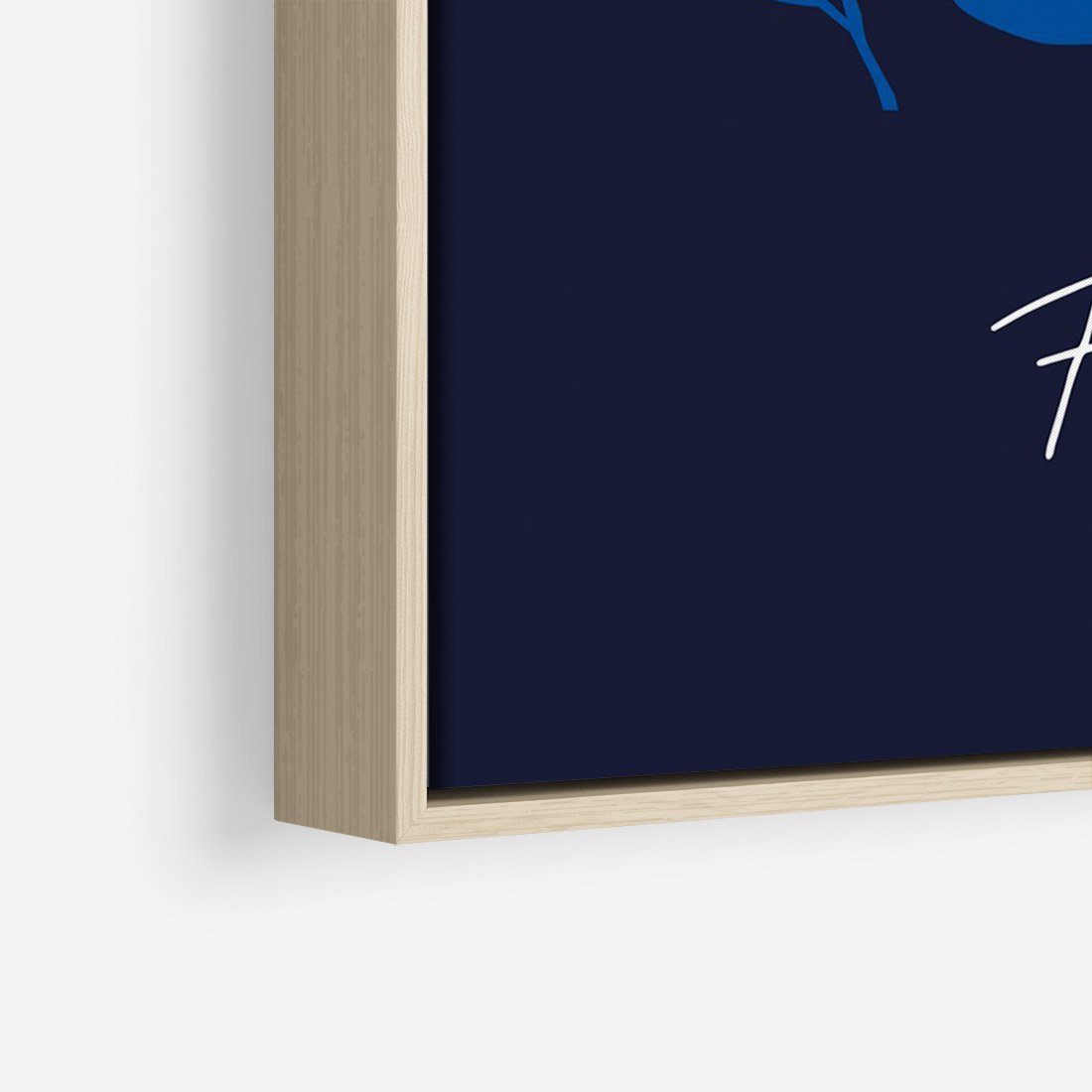 Obraz w ramie 70x100 - Podróżne Barwy - czerwone abstrakcyjne kwiaty, granatowe tło - rama drewno