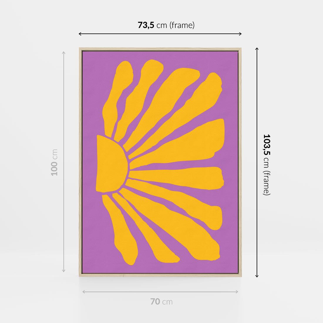 Ten abstrakcyjny plakat ukazuje żółte słońce na tle intensywnego różowego koloru, tworząc efektowną kompozycję promieniującej energii. Sztuka ta dodaje dynamicznego akcentu do przestrzeni, przypominając o mocy i pięknie natury.