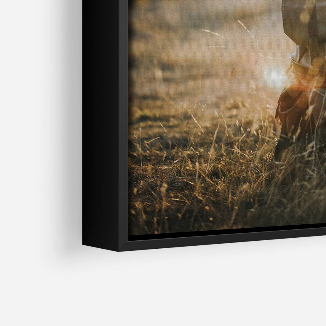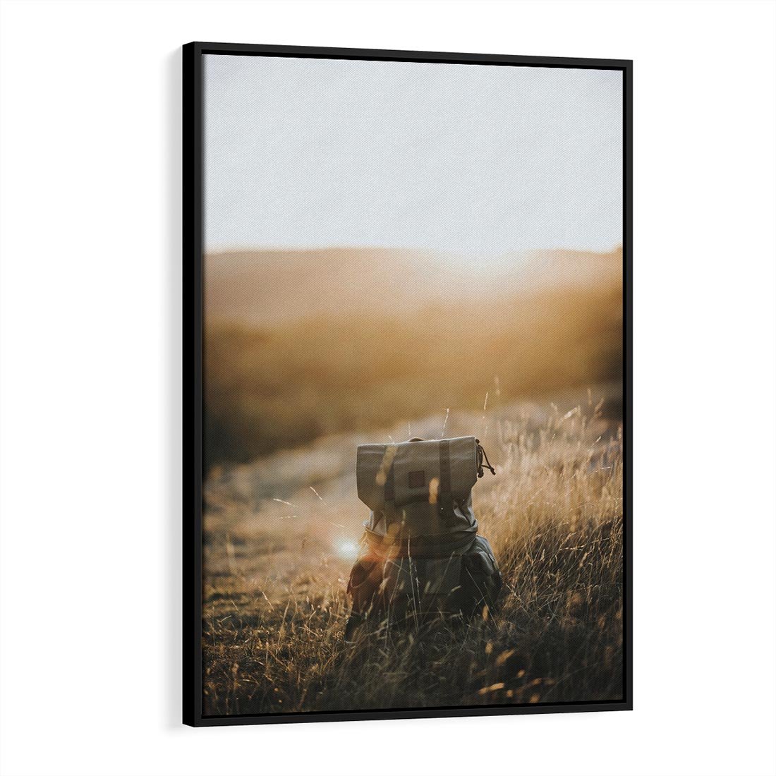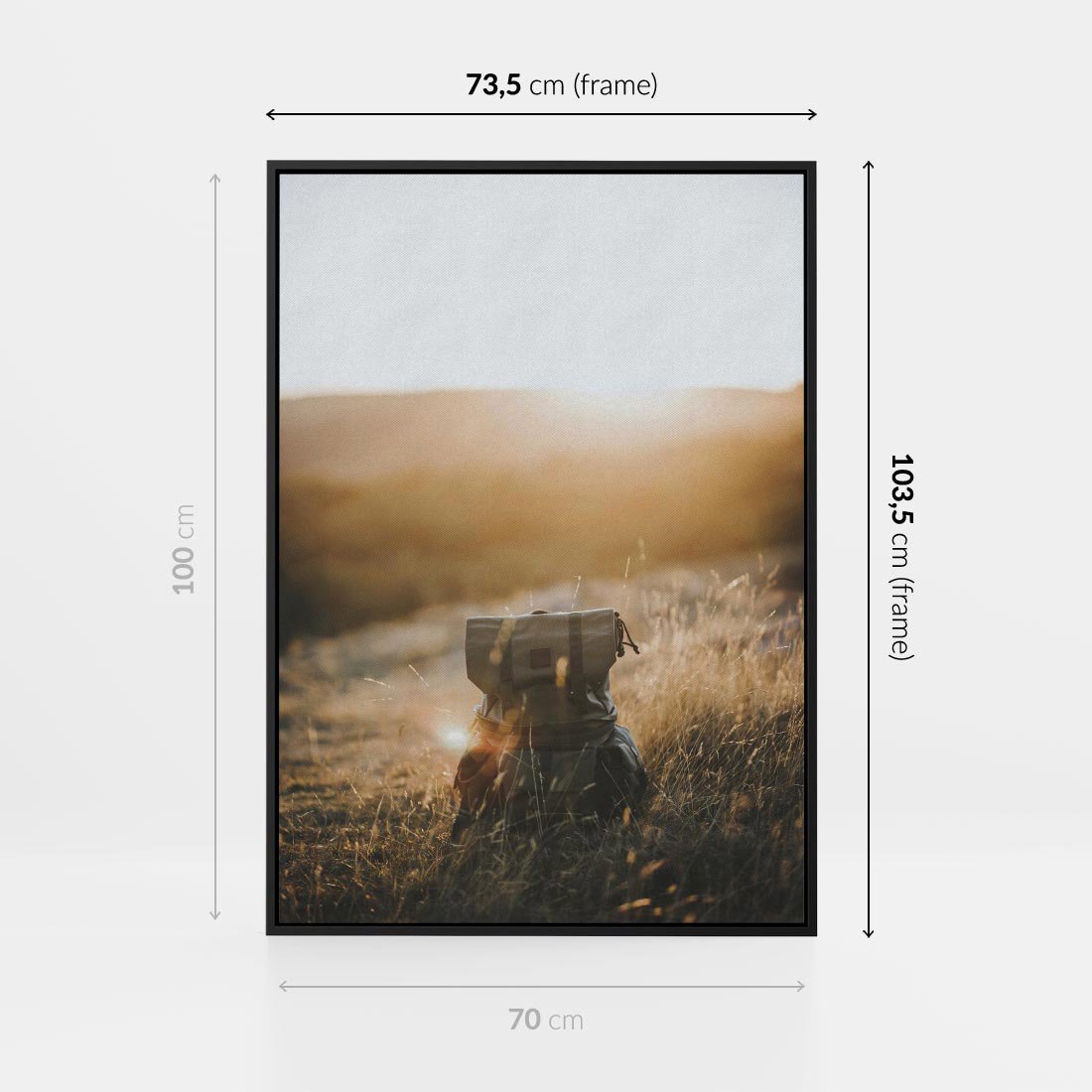 Obraz w ramie 70x100 - Podróżniczy bukiet na łące - plecak, podróż - rama czarna