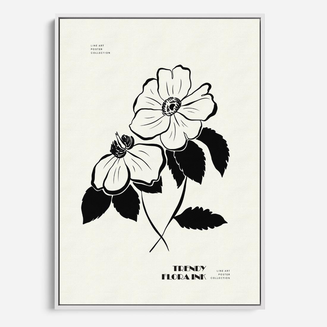 Obraz w ramie 70x100 - Poezja kwiecistej kreski - kwiaty, minimalistyczne - rama biała