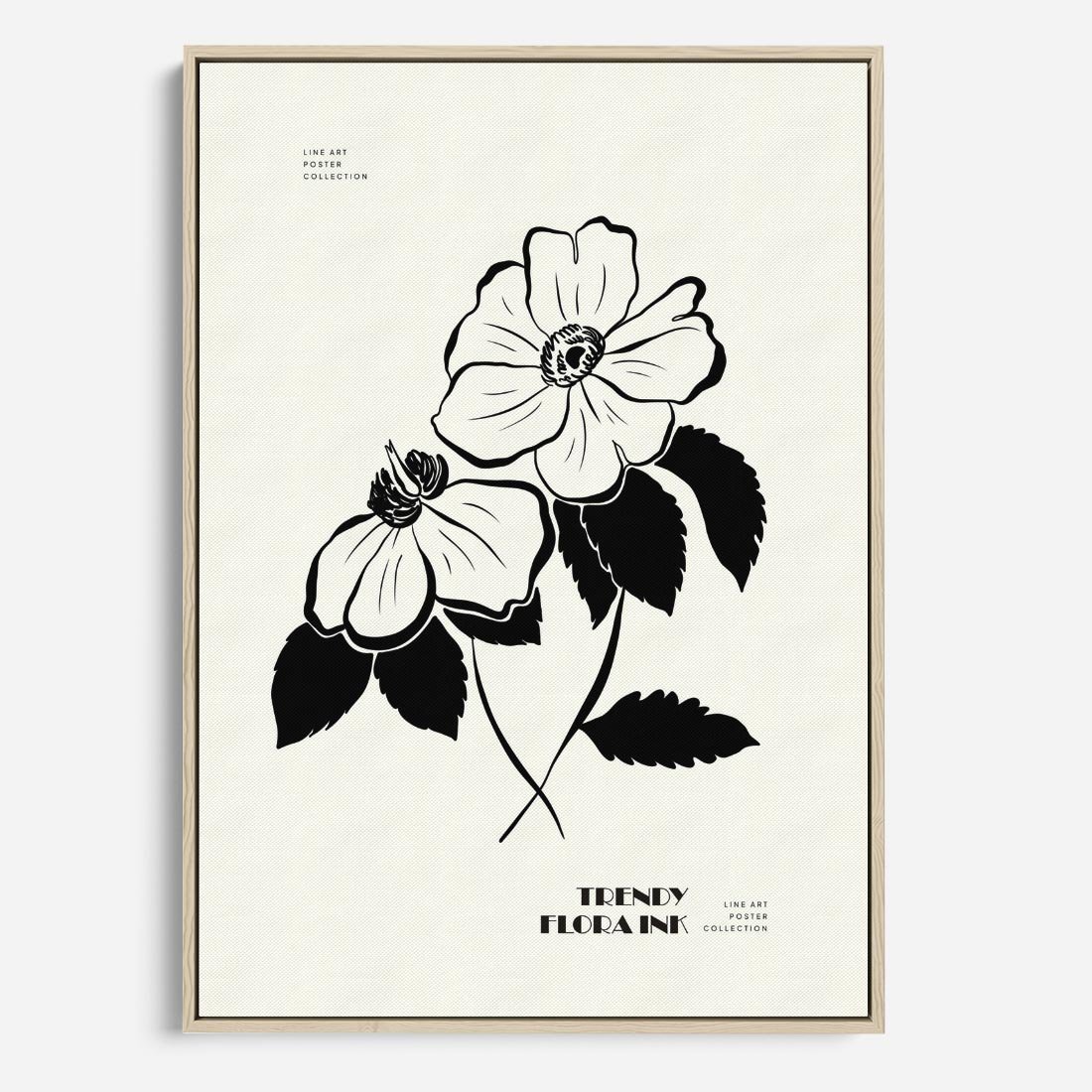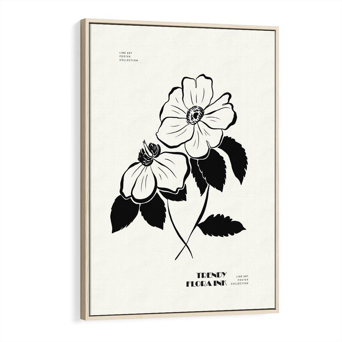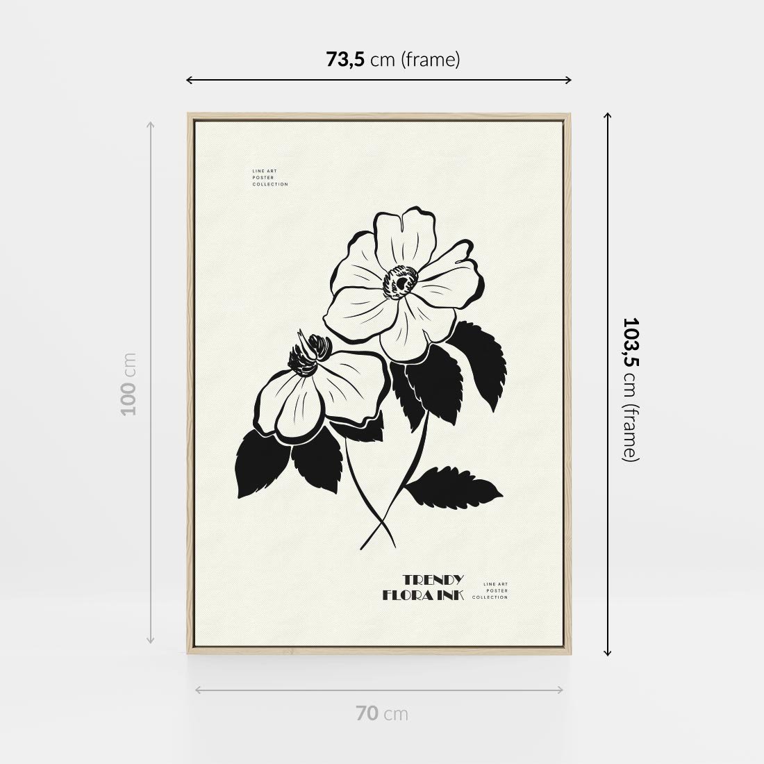 Obraz w ramie 70x100 - Poezja kwiecistej kreski - kwiaty, minimalistyczne - rama drewno