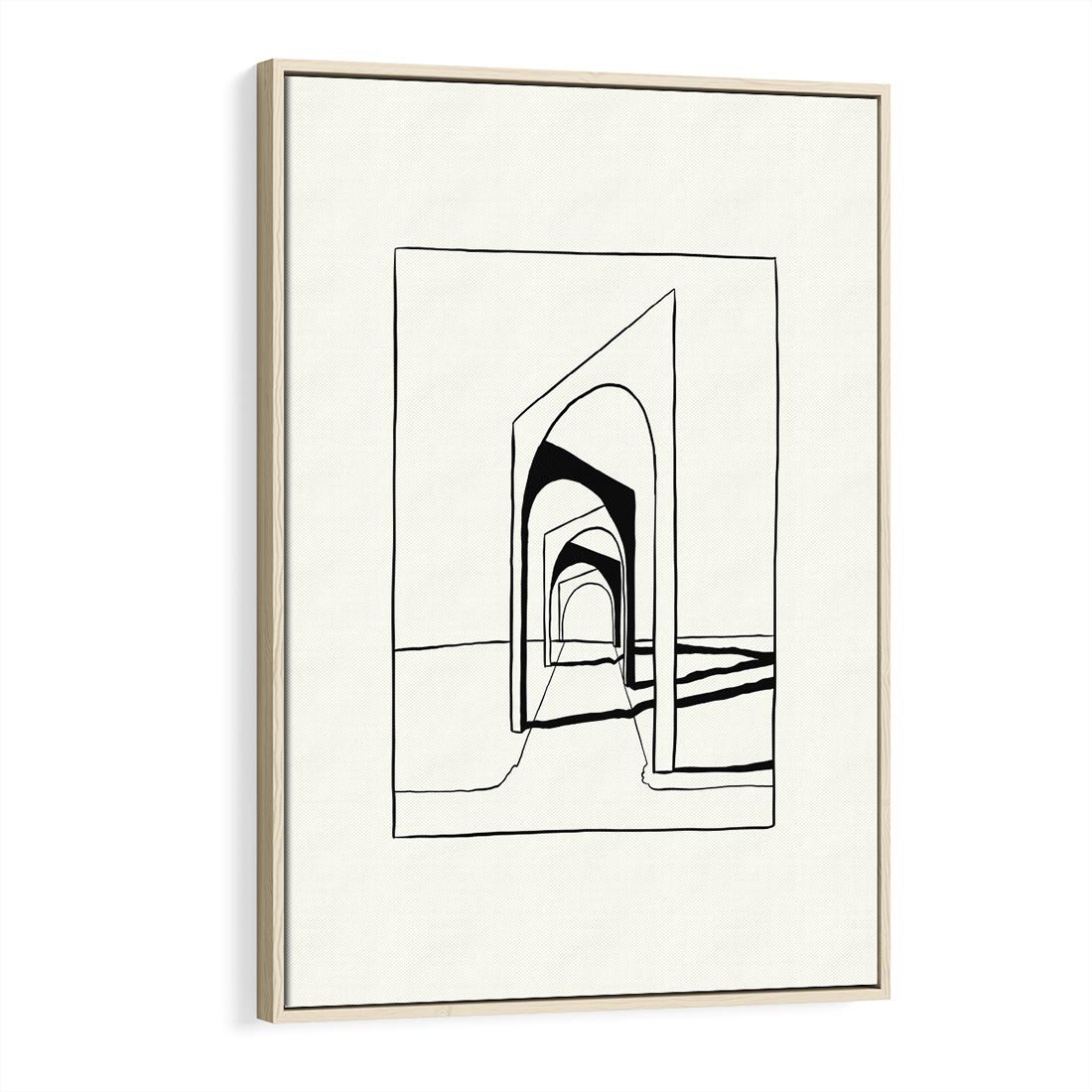 Ta nowoczesna sztuka kieruje uwagę na minimalistyczną piękno architektury, wykorzystując kontrastujące odcienie czerni i bieli. Geometryczne formy ożywają, tworząc kompozycję o wyraźnym i wyjątkowym charakterze.
