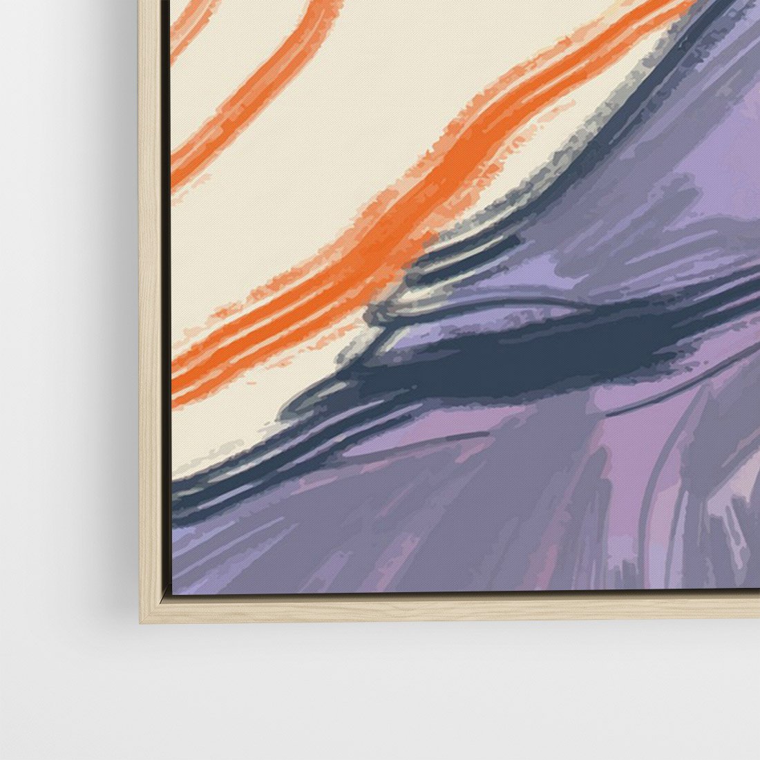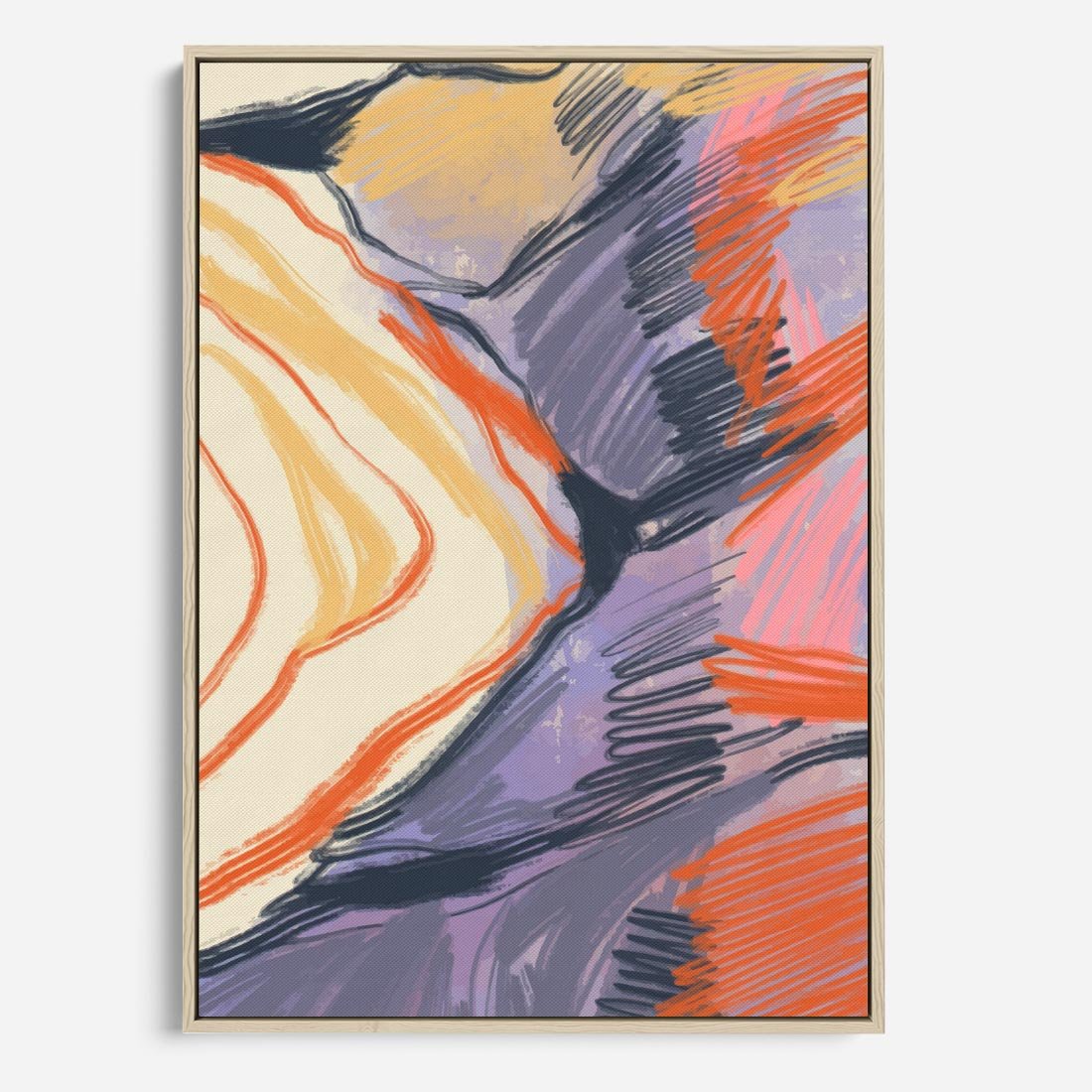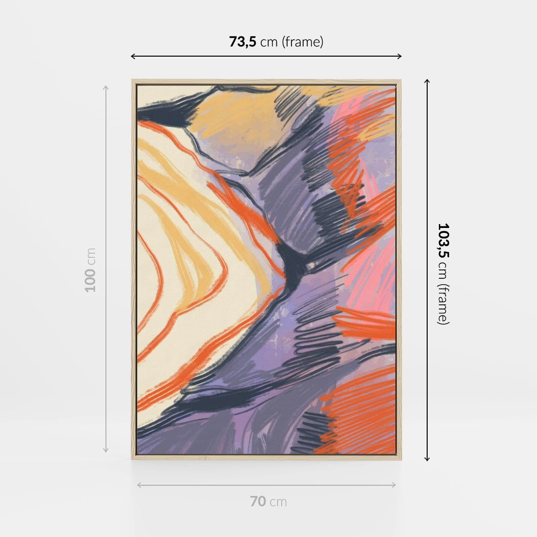 Obraz w ramie 70x100 - Pokreślony Świat - abstrakcyjne formy, odcienie pomarańczu i fioletu - rama drewno