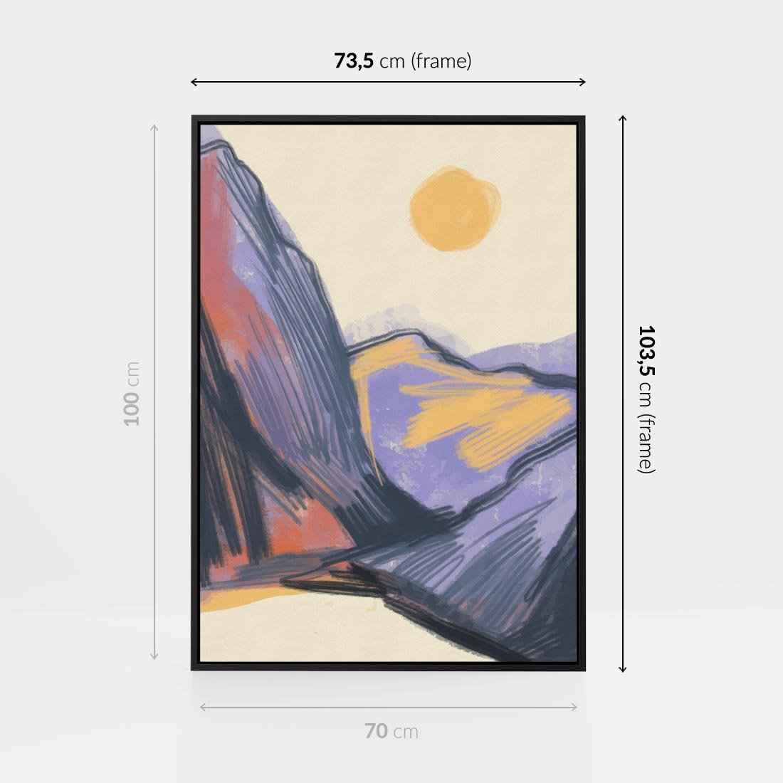 Obraz w ramie 70x100 - Ponad Szczytami - pastelowy krajobraz, nowoczesny plakat - rama czarna
