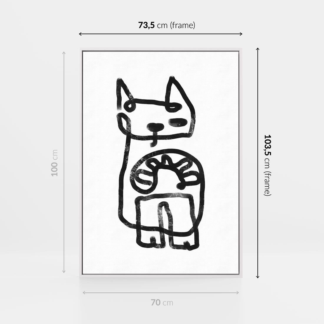 Obraz w ramie 70x100 - Portret Kociej Duszy - szkic kota, prymitywizm - rama biała
