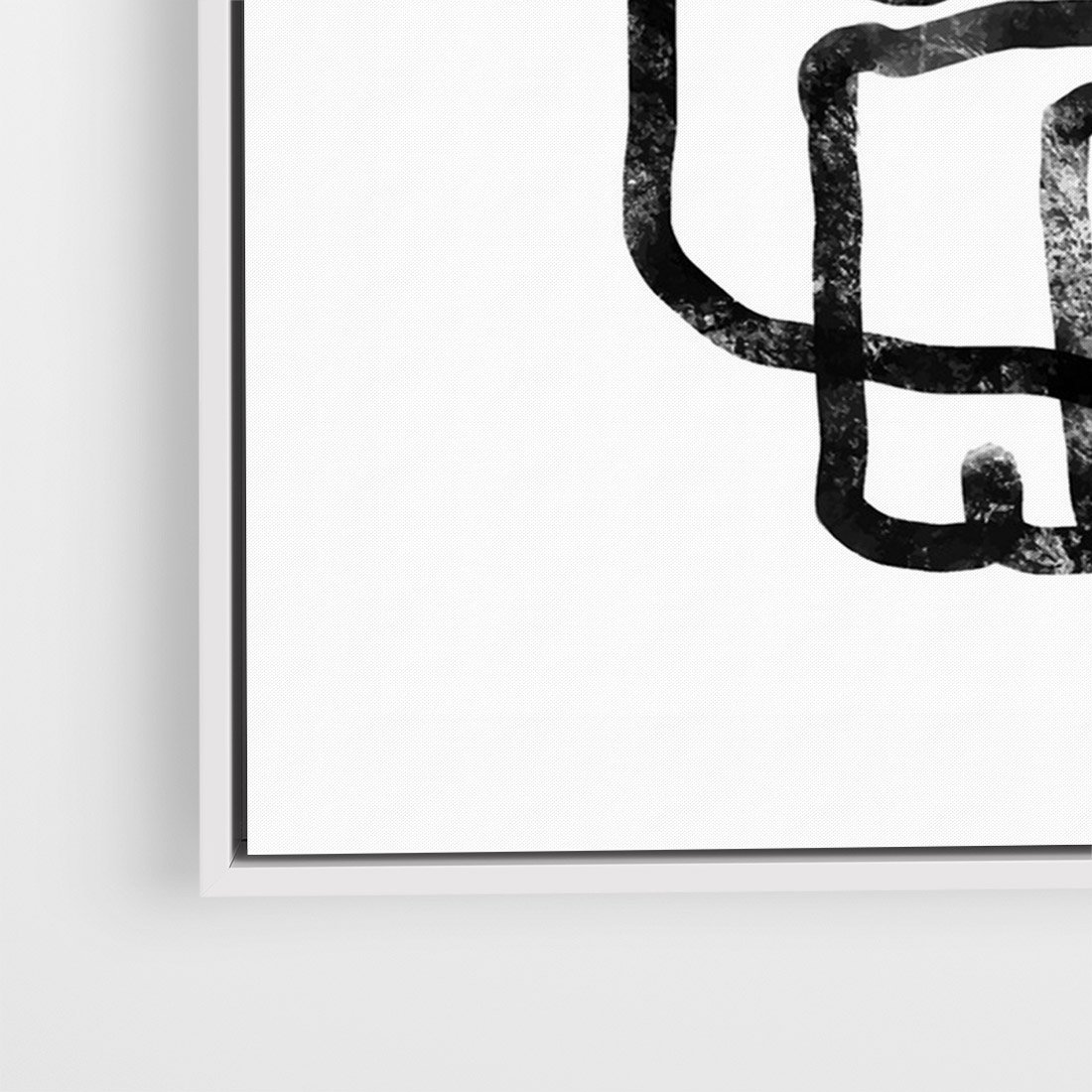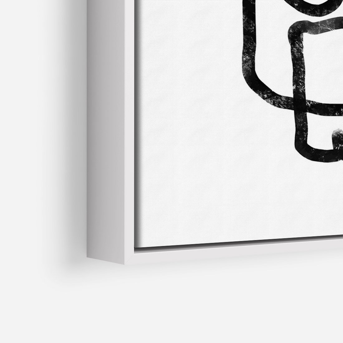 Plakat przedstawiający prymitywny szkic kota na czystym białym tle. Minimalistyczna forma oddaje esencję kociej sylwetki w prosty, ale urokliwy sposób.