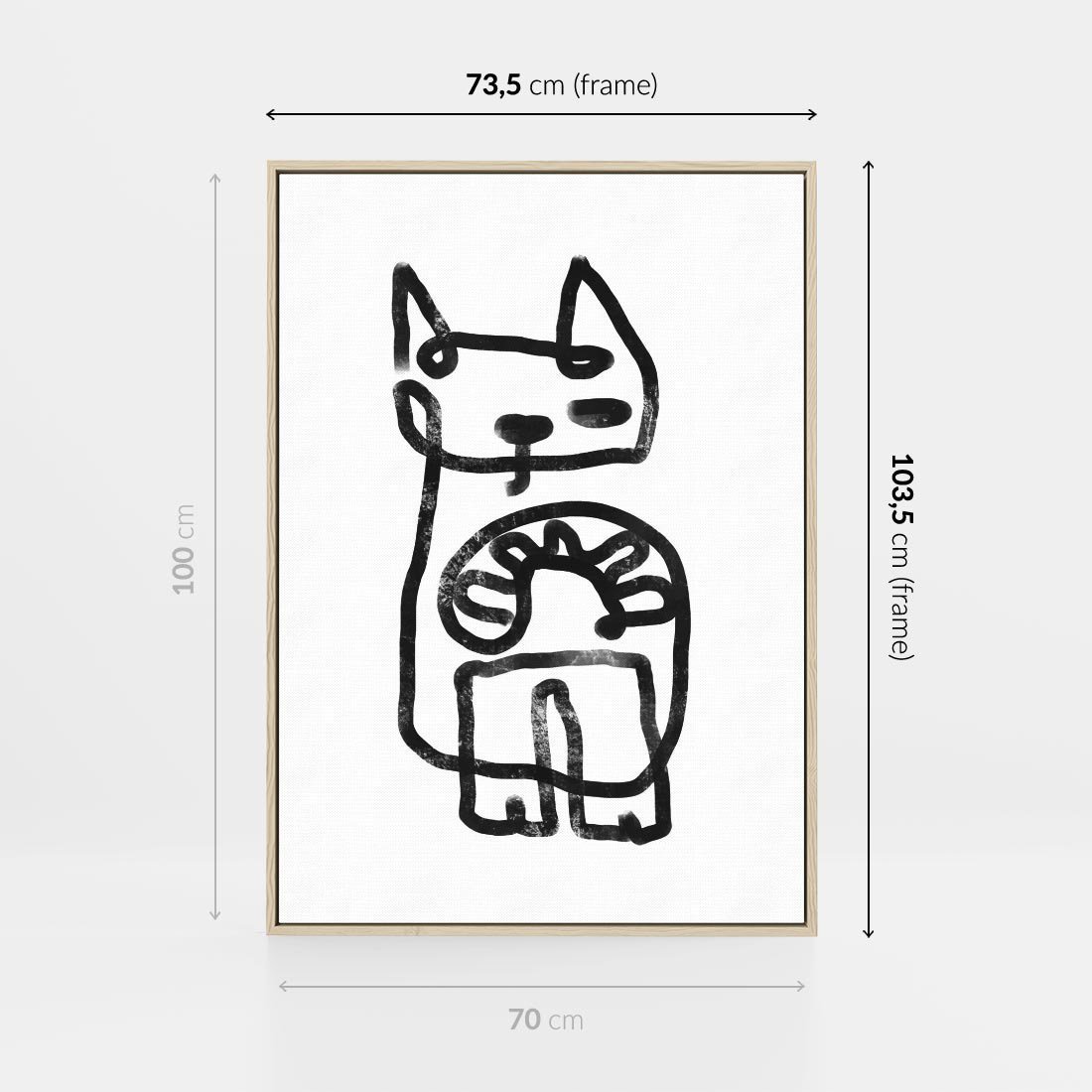 Obraz w ramie 70x100 - Portret Kociej Duszy - szkic kota, prymitywizm - rama drewno