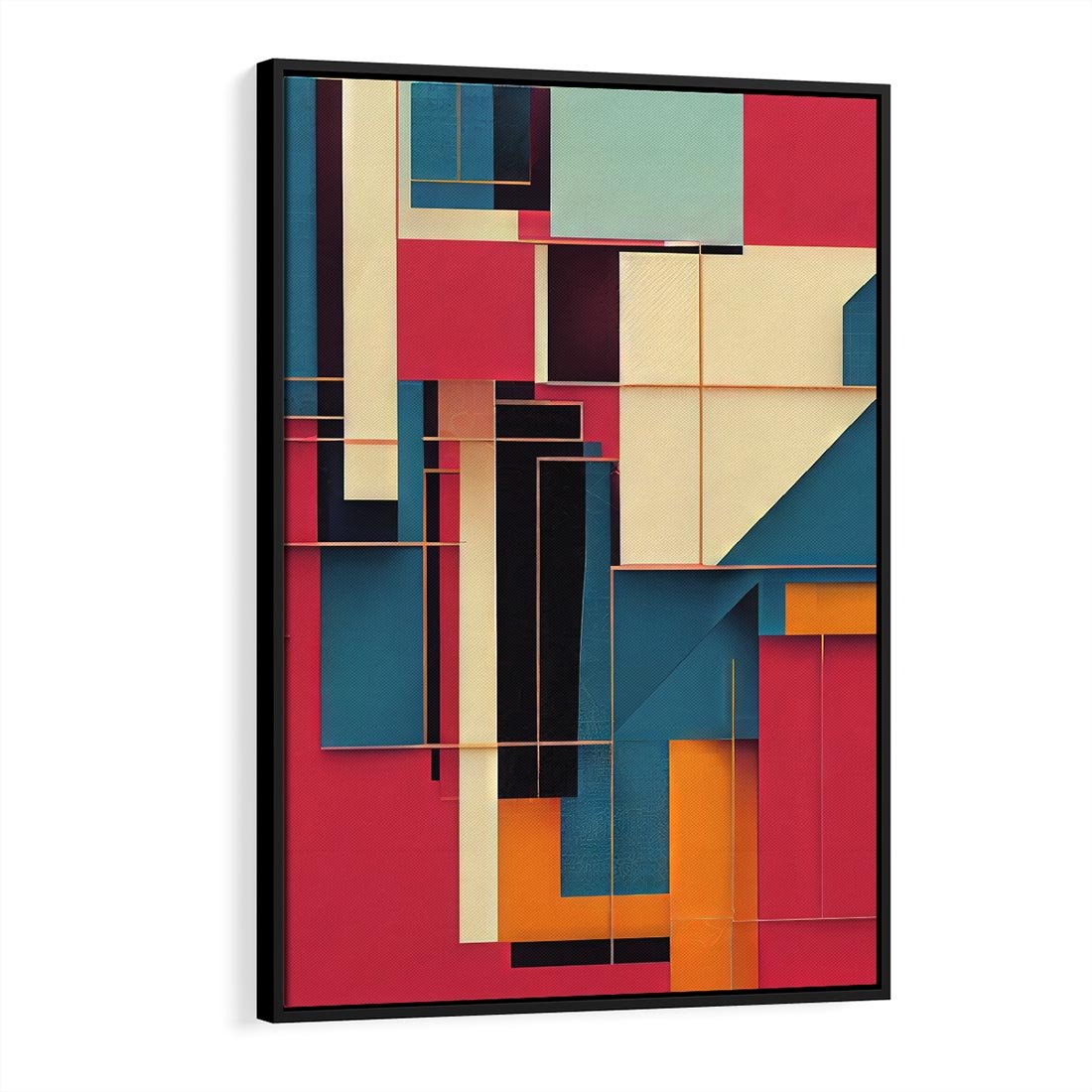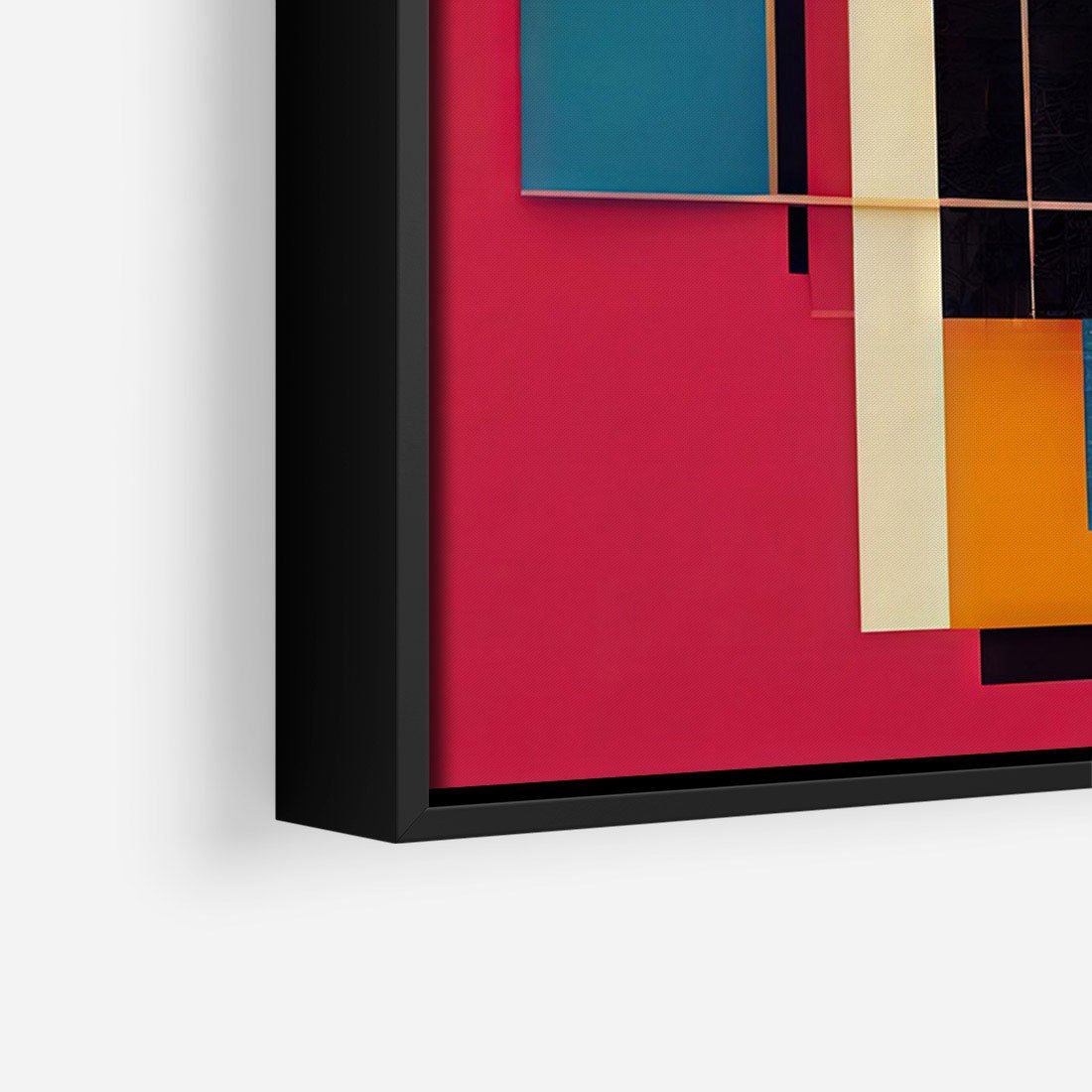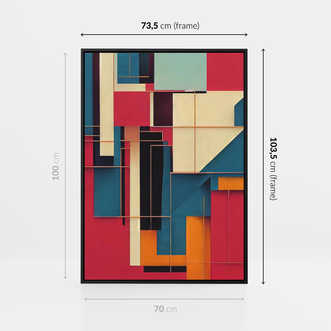 Obraz w ramie 70x100 - Przejście przez labirynt myśli - kolorowa abstrakcja, instalacja z prostokątów i lini - rama czarna