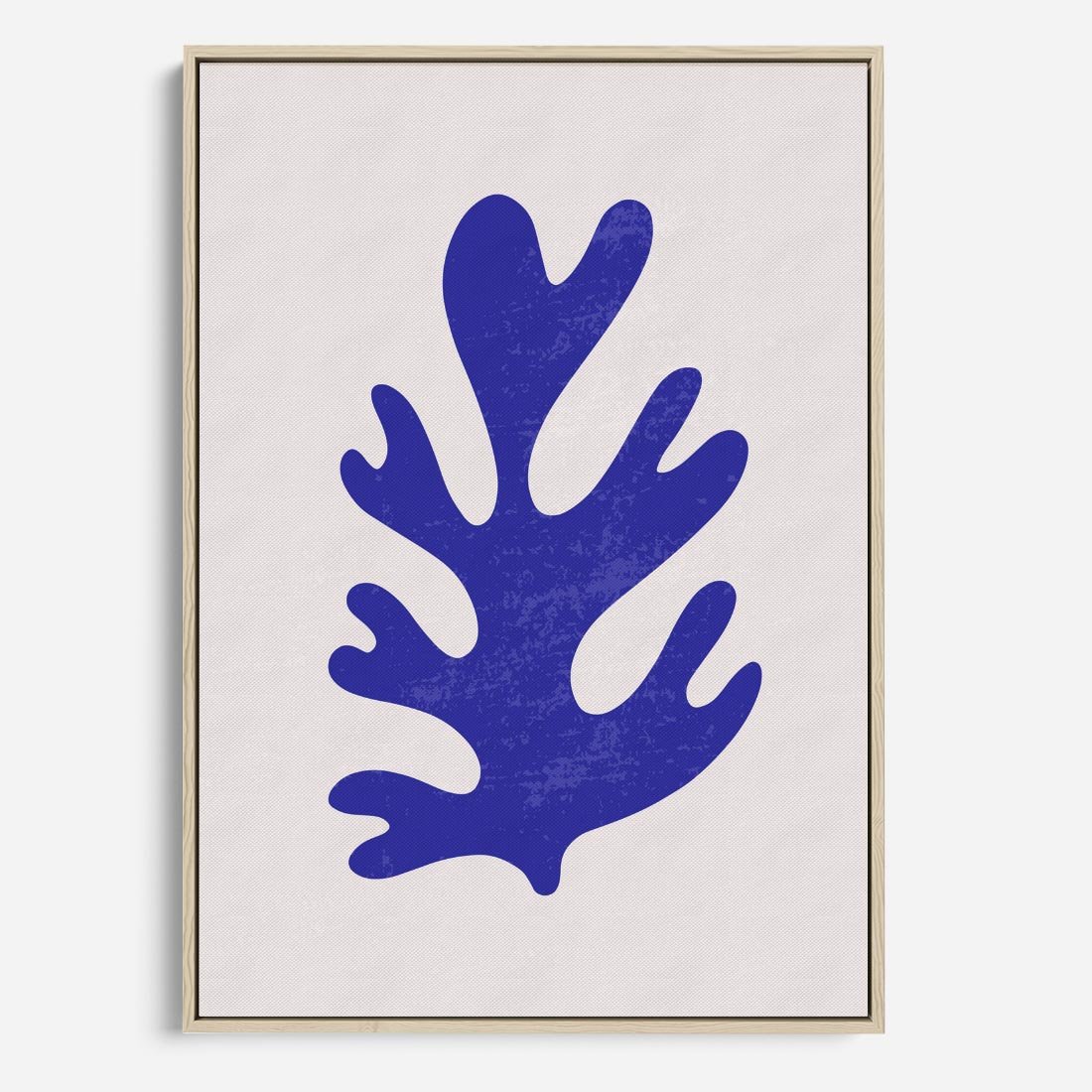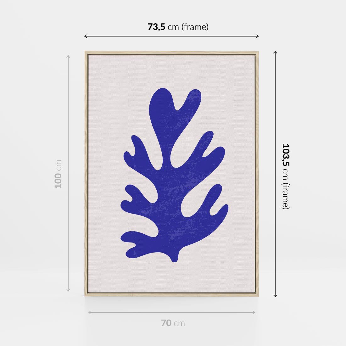 Obraz w ramie 70x100 - Przenikająca Struktura - boho plakat, niebieski liść w intensywnym kolorze - rama drewno