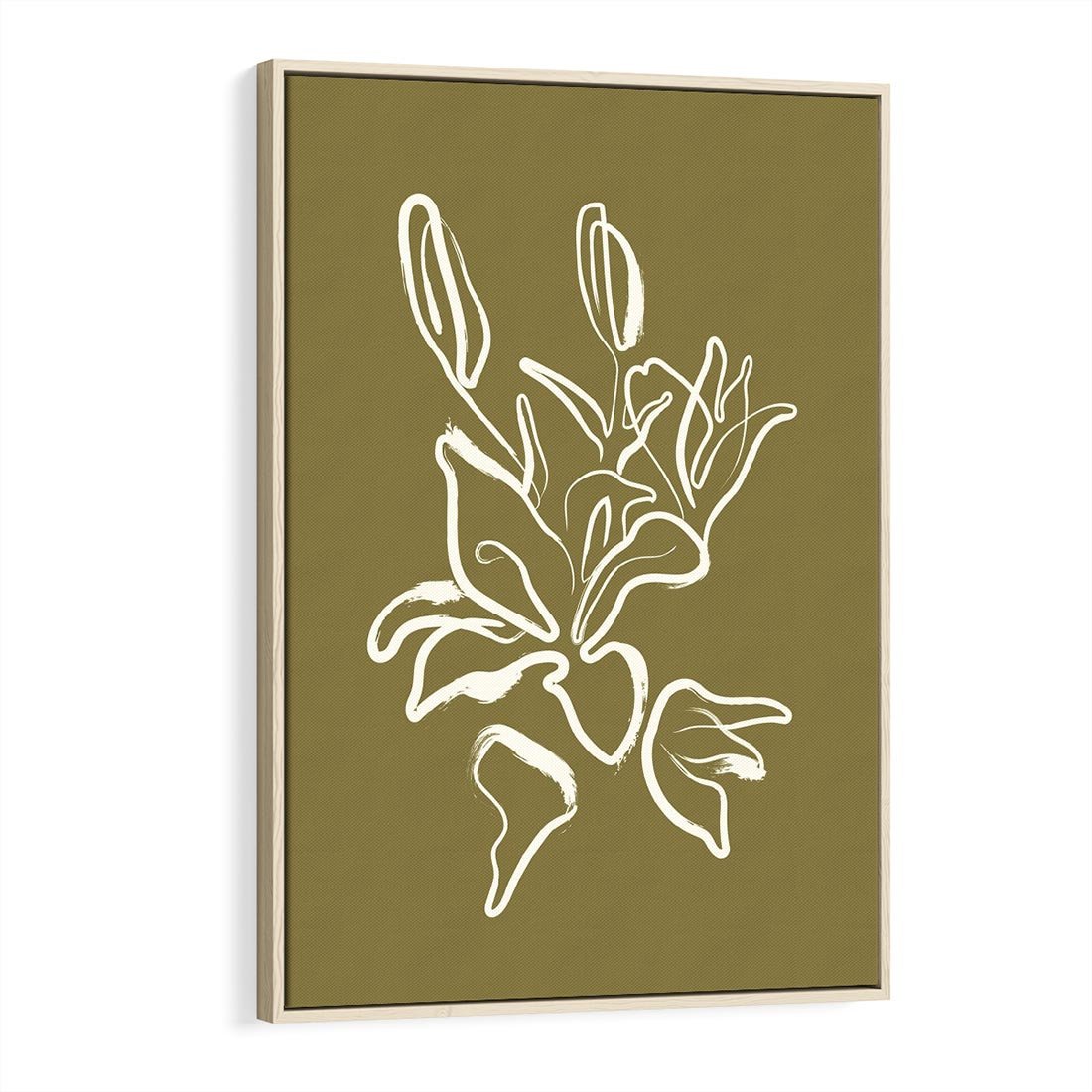 Ten plakat przedstawia abstrakcyjną roślinę w formie minimalistycznego beżowego szkicu na głębokim brązowym tle. Sztuka ta tworzy spokojny i subtelną kompozycję, która dodaje przytulności i estetycznej harmonii Twojej przestrzeni, emanując jednocześnie unikalnym wdziękiem naturalnego piękna.