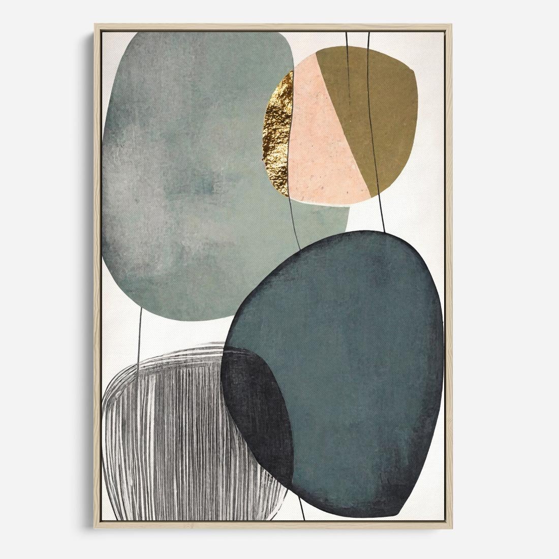Obraz w ramie 70x100 - Przenikające Formy Duszy - abstrakcyjny obraz, geometryczne obłe formy - rama drewno