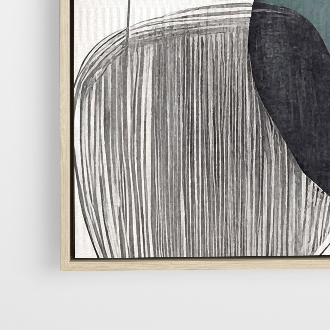 Ten abstrakcyjny obraz to połączenie geometrycznych, obłych form w stonowanych odcieniach szarości i czerni. W minimalistycznym stylu, kompozycja ta emanuje spokojem i nowoczesnością, doskonale wpisując się w różnorodne wnętrza.