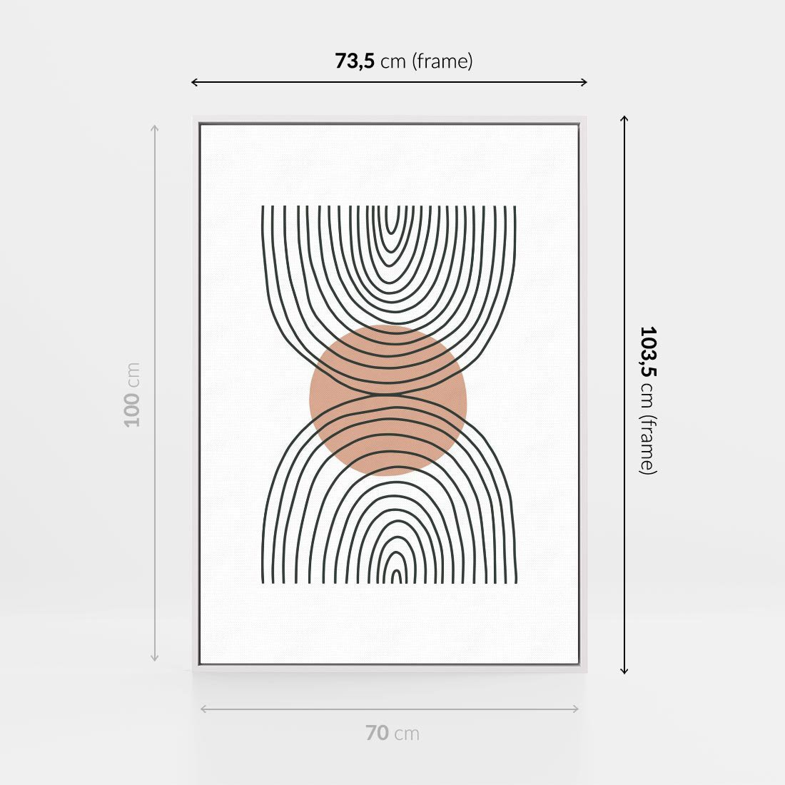 Abstrakcyjna kompozycja półkoli i kół w ciepłych kolorach wprowadzi nowoczesność i harmonię do Twojego wnętrza. Śmiałość formy kontrastuje z delikatnymi kreskami, tworząc unikalny balans. To dzieło sztuki zachwyci miłośników minimalizmu i stylu boho, dodając wyjątkowego charakteru każdemu pomieszczeniu.