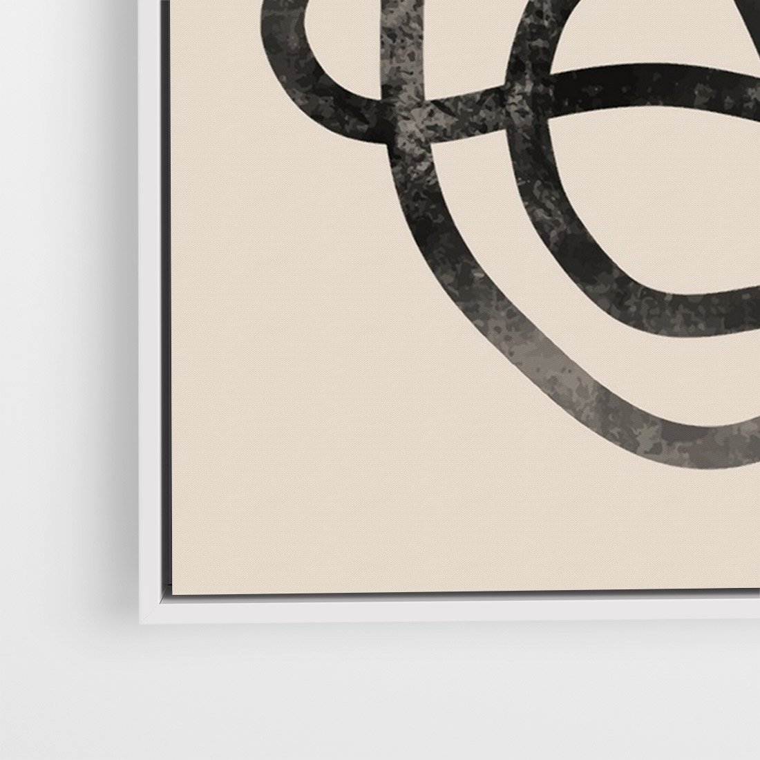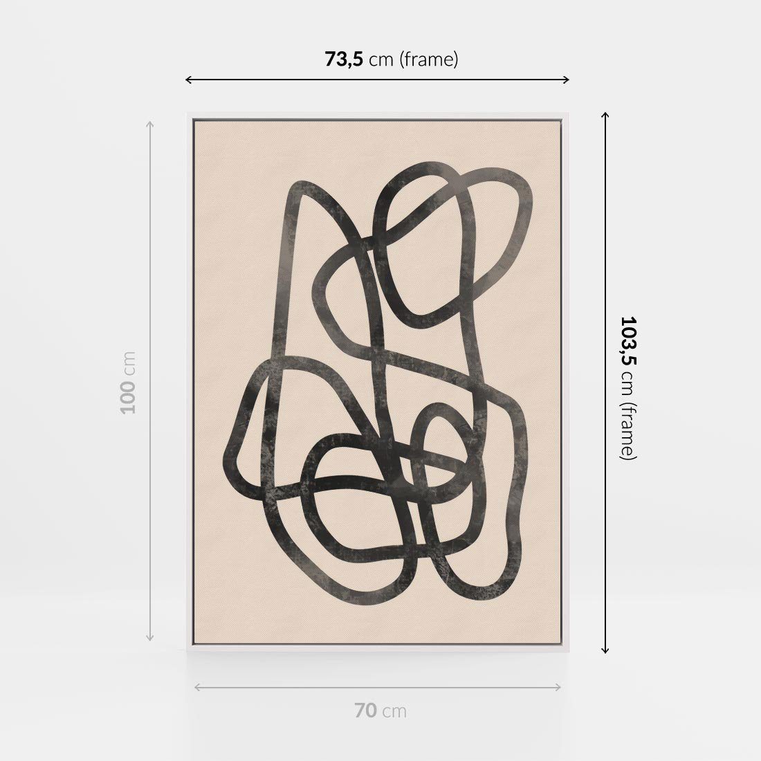 Obraz w ramie 70x100 - Przenikanie Wirtualnych Wymiarów - zaplątane minimalistyczne linie, na bezowym tle - rama biała