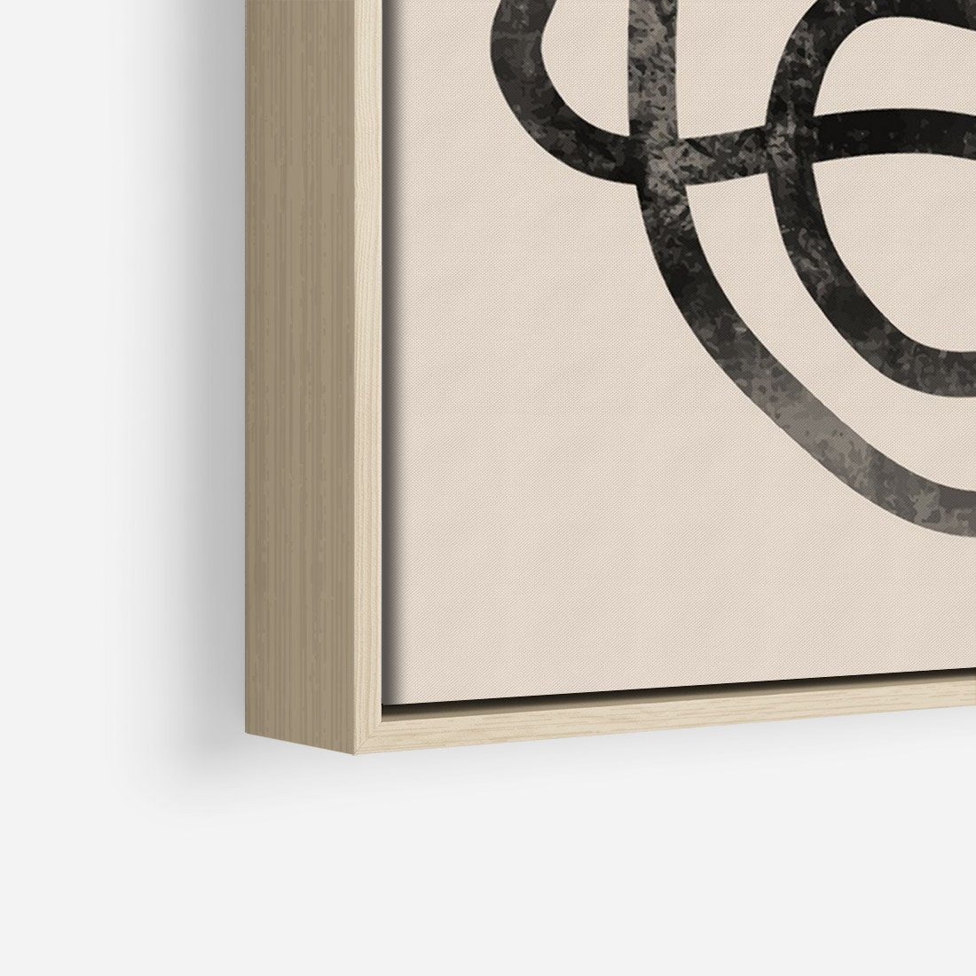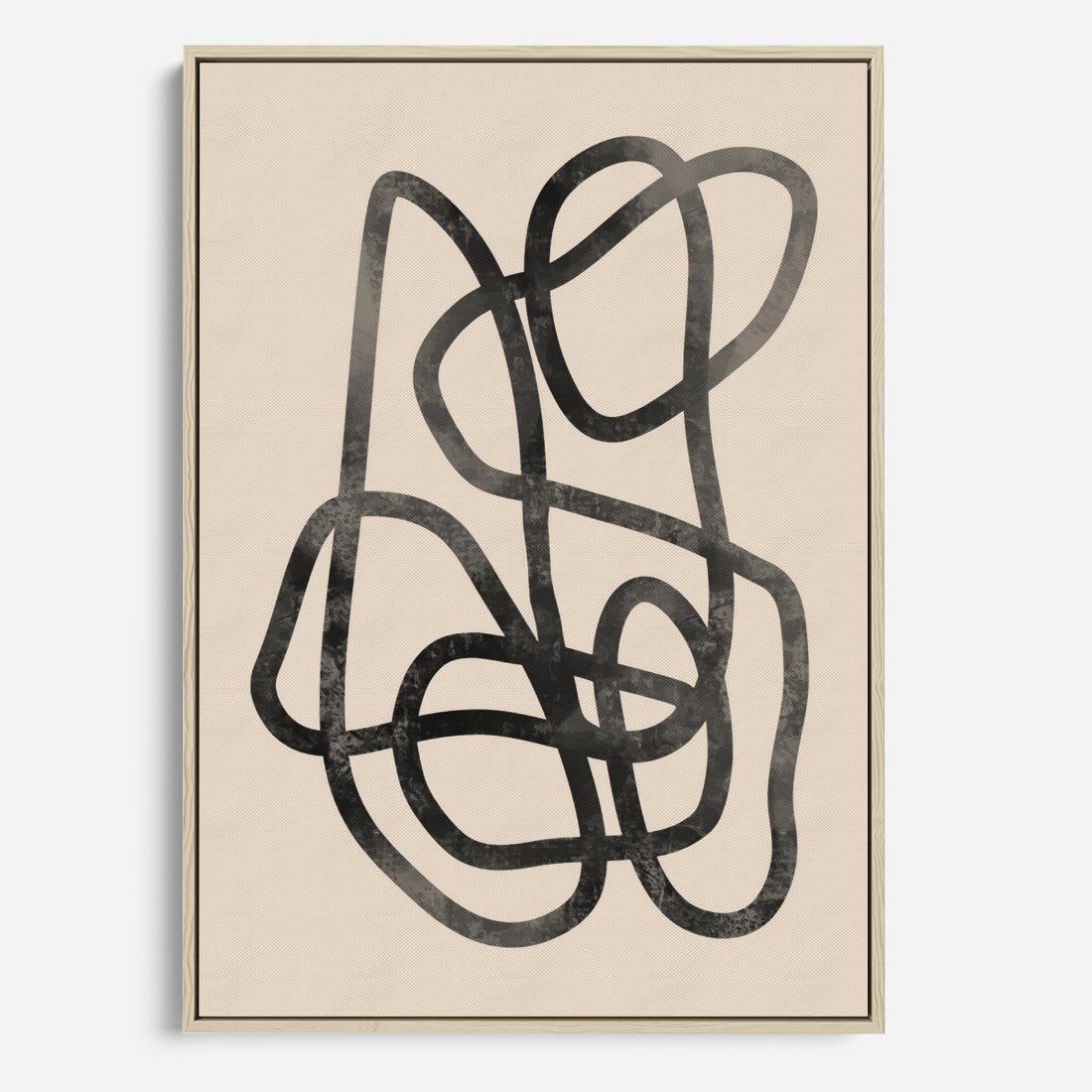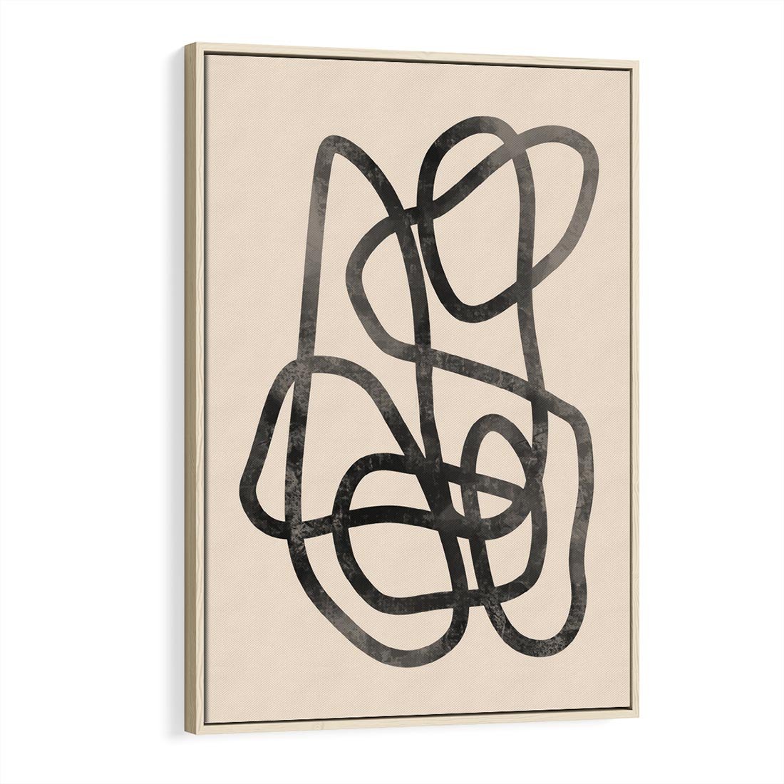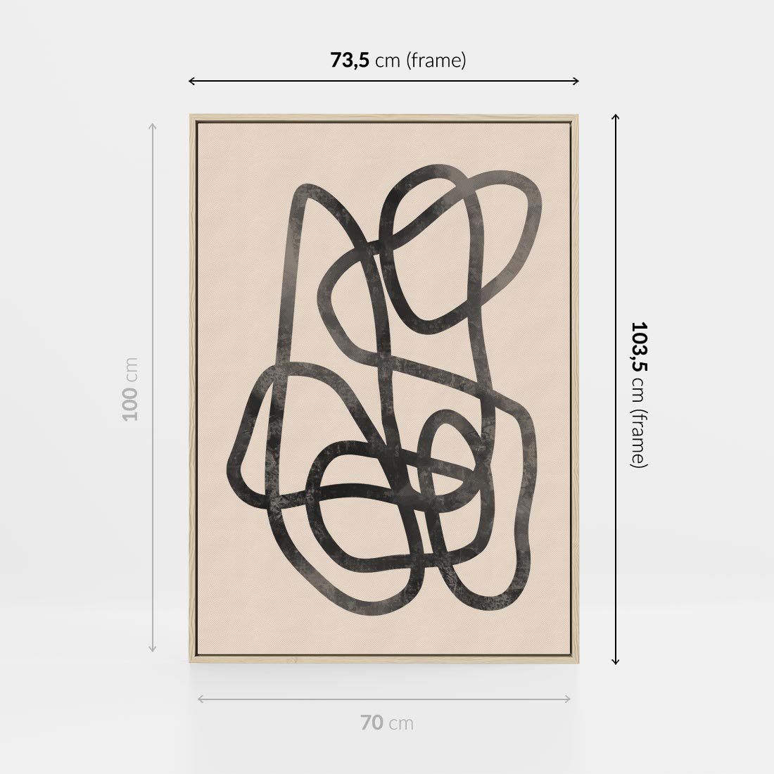 Obraz w ramie 70x100 - Przenikanie Wirtualnych Wymiarów - zaplątane minimalistyczne linie, na bezowym tle - rama drewno