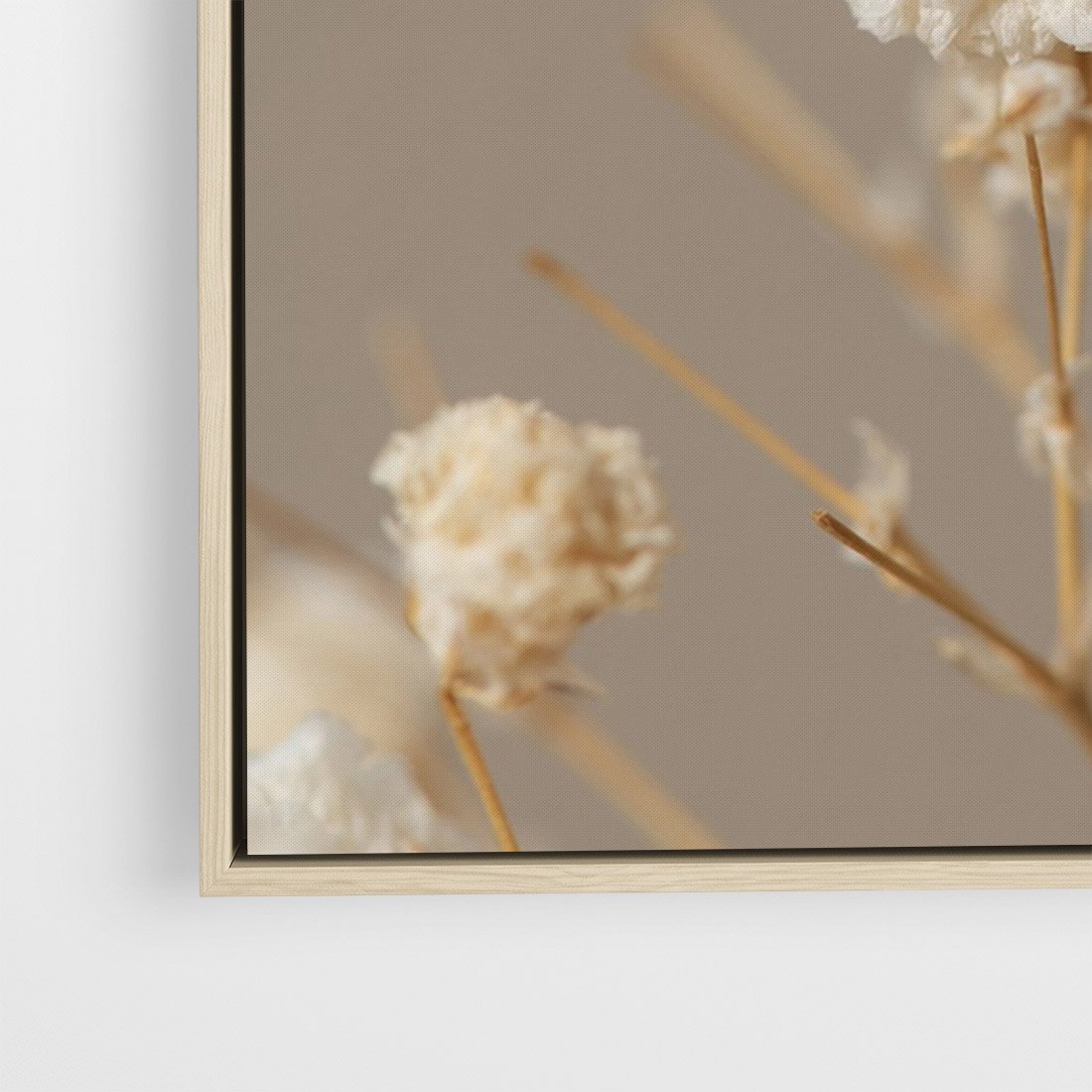 Ten niepowtarzalny obraz na płótnie przedstawia suche kwiaty gipsówki, które dzięki procesowi suszenia zachowują swoją naturalną urodę. Ich przezroczyste płatki i delikatne formy tworzą subtelny i elegancki obraz. Dodaj szczyptę natury i wyrafinowania do swojego wnętrza tym pięknym dziełem sztuki.