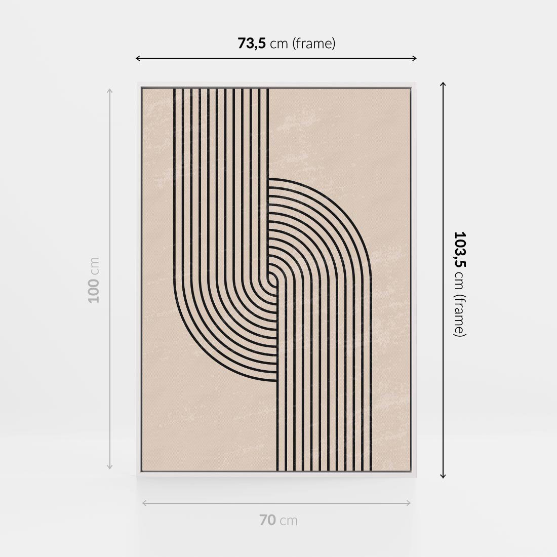 Nasz plakat to abstrakcyjne linie geometryczne, wykonane z czarnych linii na spokojnym beżowym tle. To artystyczne połączenie wprowadza nowoczesność i wyrafinowanie do Twoich wnętrz, dodając subtelny akcent o interesującej dynamice.
