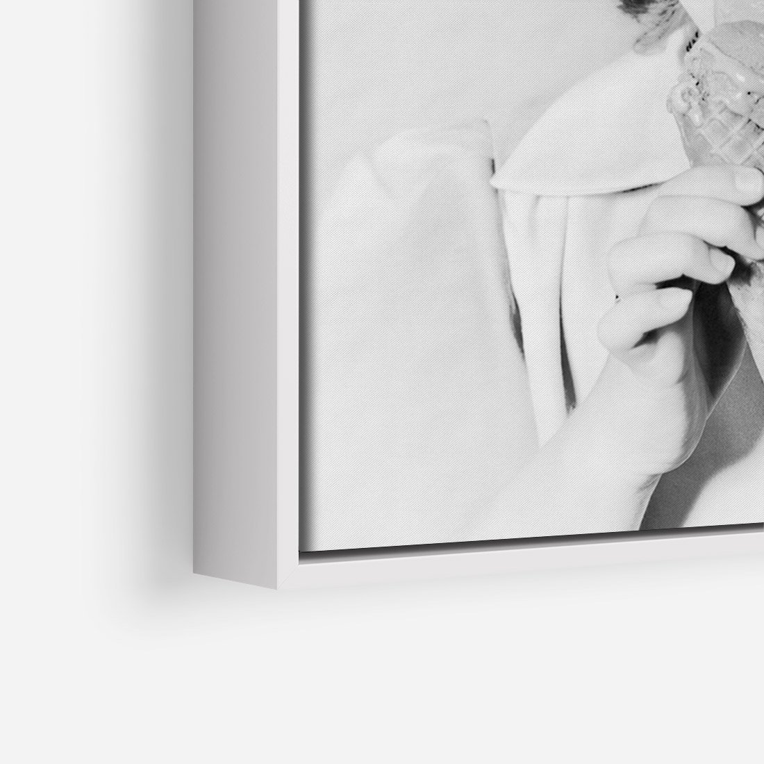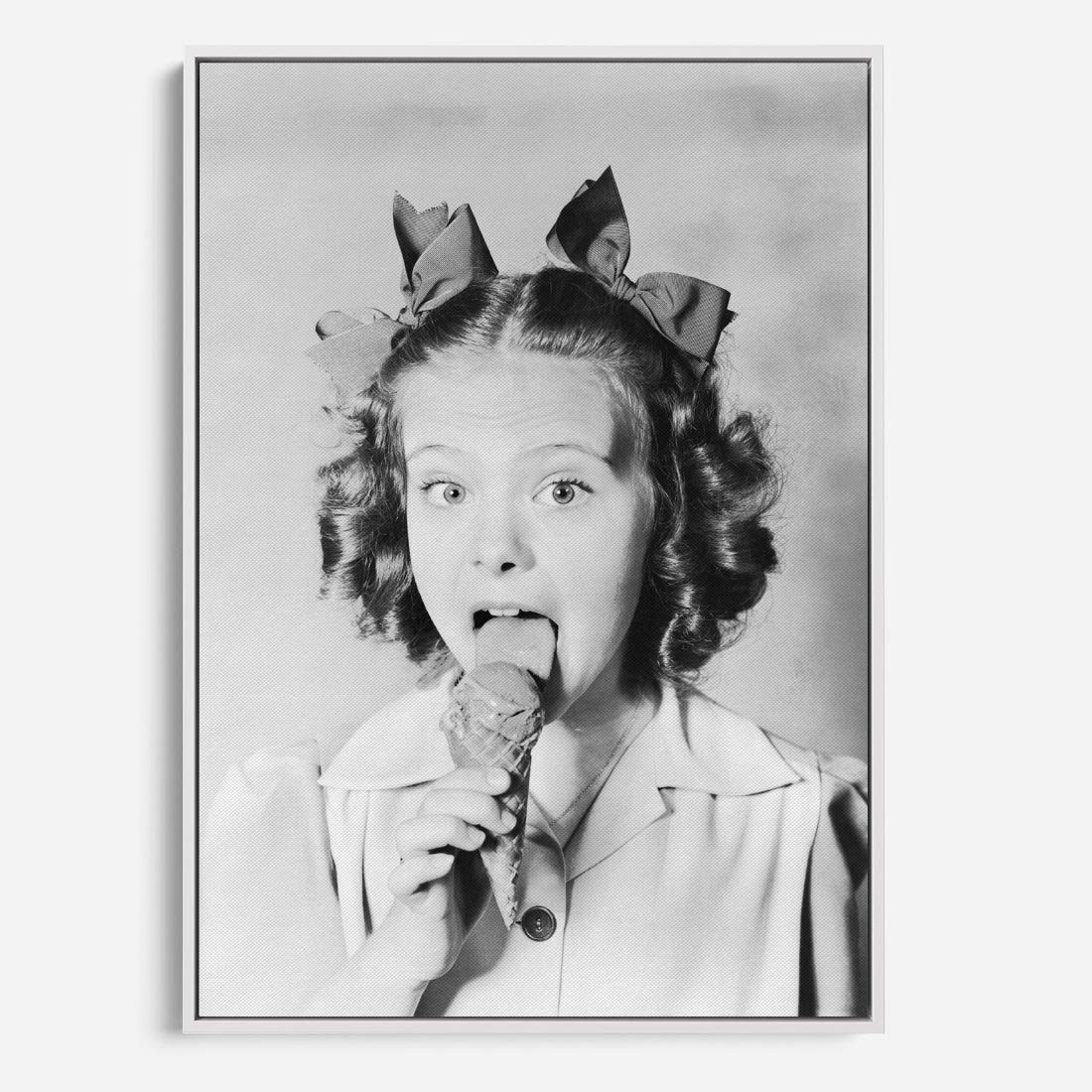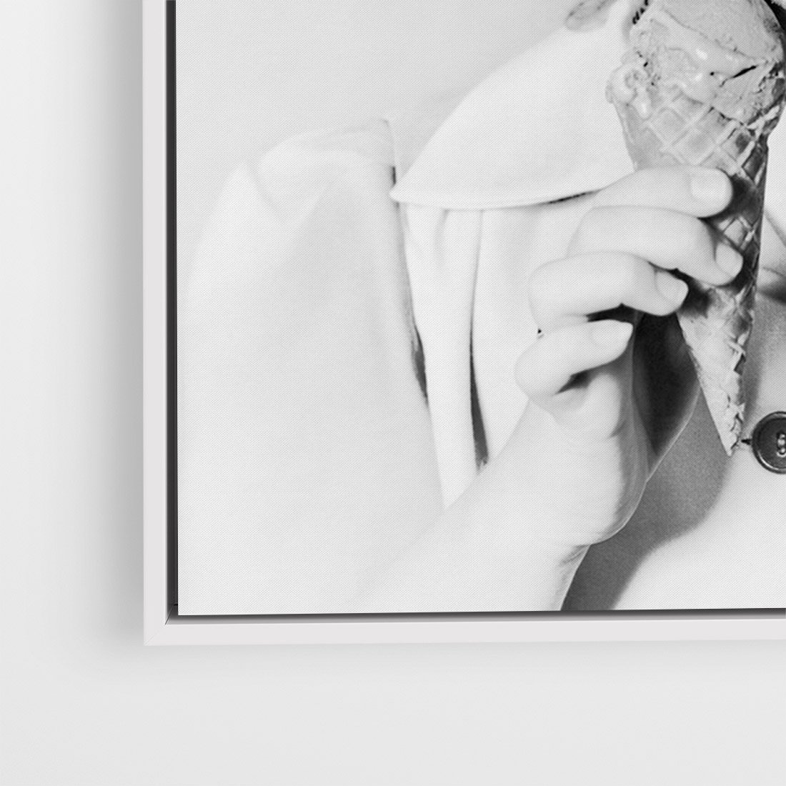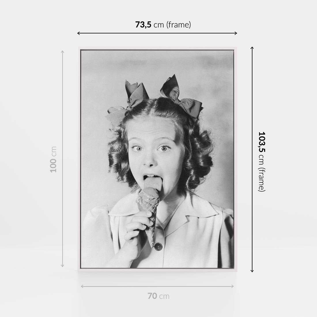 To urocze retro zdjęcie w czerni i bieli ukazuje dziewczynkę, która z apetytem delektuje się lodem. Ten nostalgiczny obraz przenosi nas do minionych czasów i emanuje urokiem i beztroską dzieciństwa. Styl retro nadaje temu zdjęciu wyjątkowego uroku, sprawiając, że staje się ono nie tylko zdjęciem, ale również podróżą w czasie do lat, które budzą sentyment i ciepłe wspomnienia. To idealny dodatek do wnętrza, który przywołuje atmosferę przeszłości i dodaje uroku każdemu pomieszczeniu.