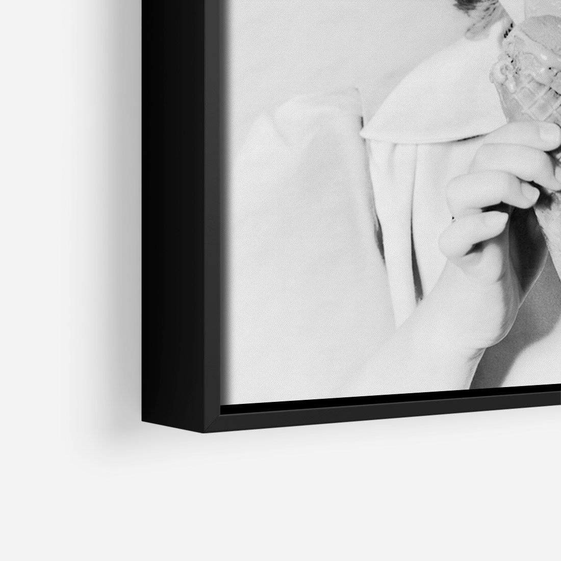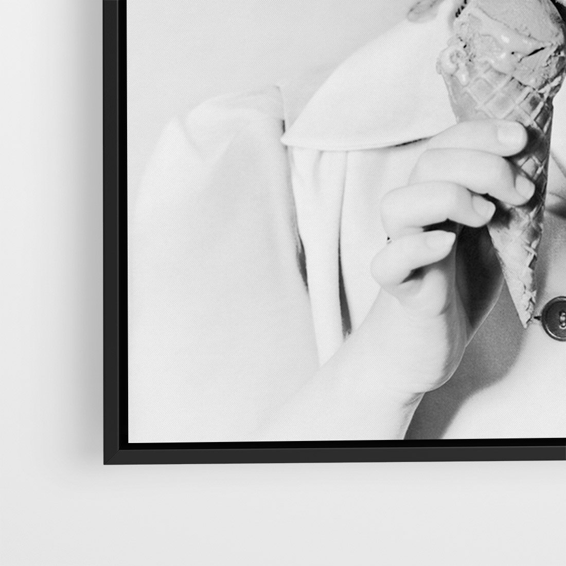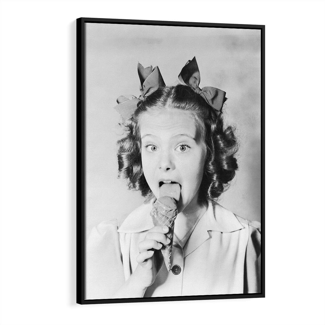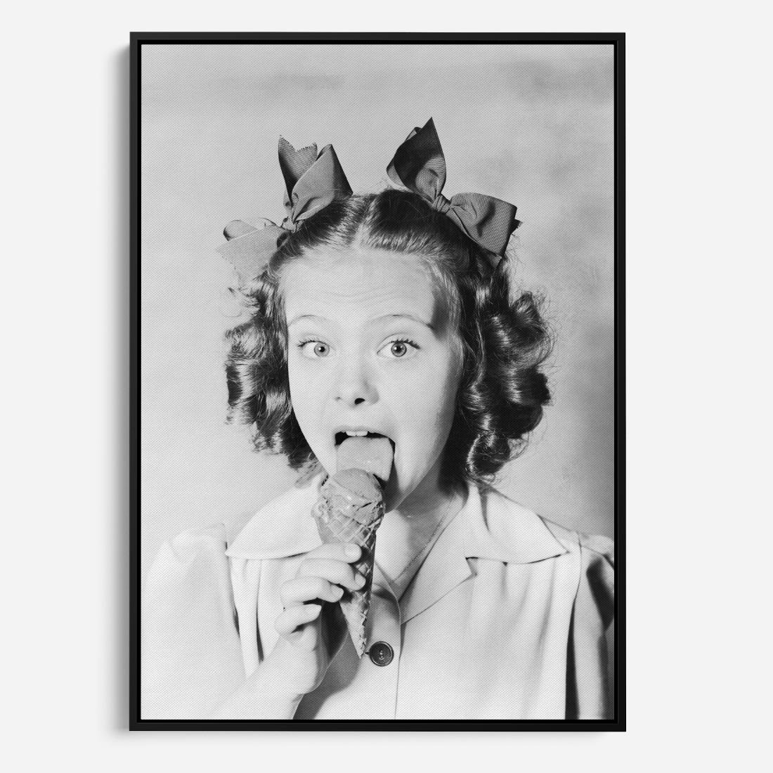 To urocze retro zdjęcie w czerni i bieli ukazuje dziewczynkę, która z apetytem delektuje się lodem. Ten nostalgiczny obraz przenosi nas do minionych czasów i emanuje urokiem i beztroską dzieciństwa. Styl retro nadaje temu zdjęciu wyjątkowego uroku, sprawiając, że staje się ono nie tylko zdjęciem, ale również podróżą w czasie do lat, które budzą sentyment i ciepłe wspomnienia. To idealny dodatek do wnętrza, który przywołuje atmosferę przeszłości i dodaje uroku każdemu pomieszczeniu.