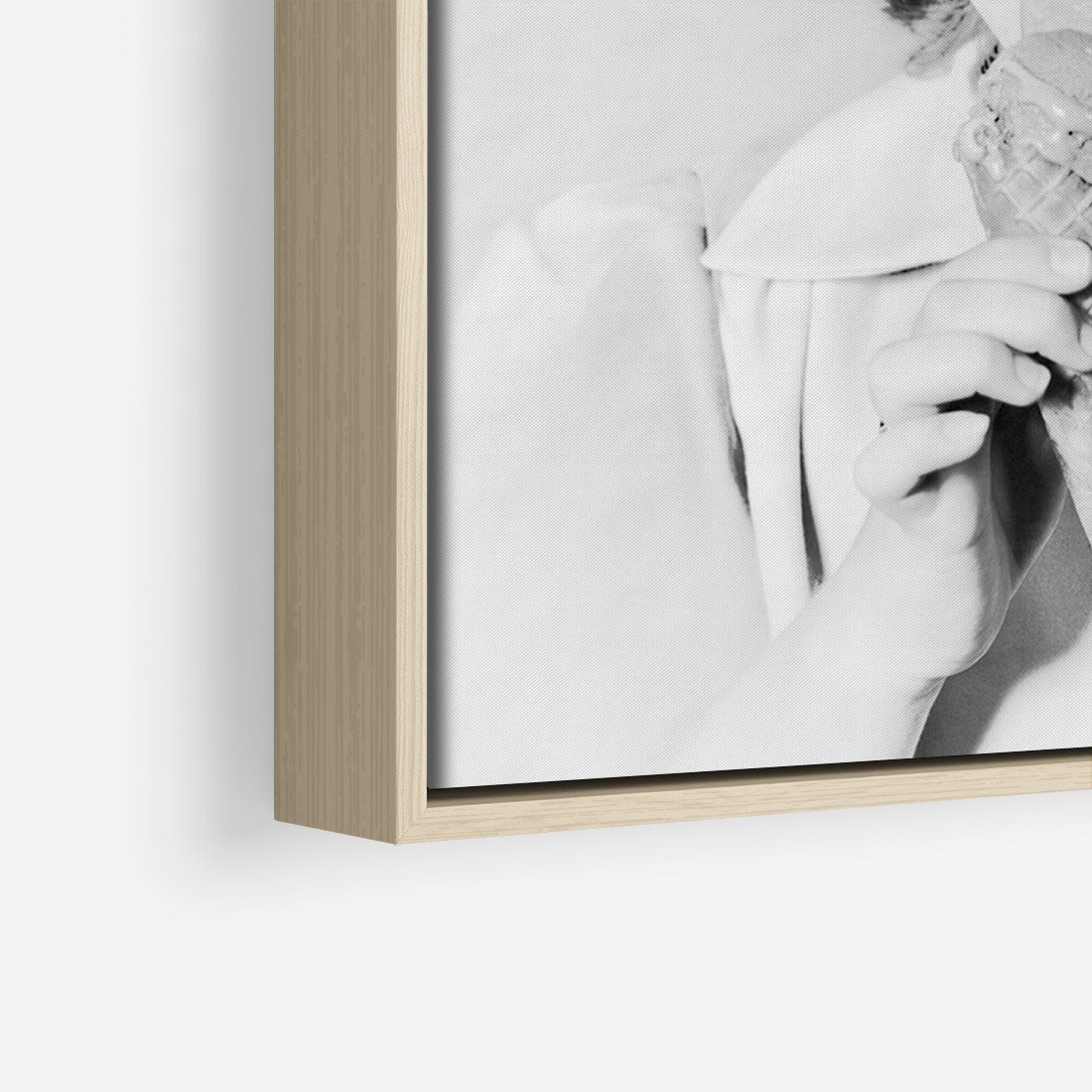 To urocze retro zdjęcie w czerni i bieli ukazuje dziewczynkę, która z apetytem delektuje się lodem. Ten nostalgiczny obraz przenosi nas do minionych czasów i emanuje urokiem i beztroską dzieciństwa. Styl retro nadaje temu zdjęciu wyjątkowego uroku, sprawiając, że staje się ono nie tylko zdjęciem, ale również podróżą w czasie do lat, które budzą sentyment i ciepłe wspomnienia. To idealny dodatek do wnętrza, który przywołuje atmosferę przeszłości i dodaje uroku każdemu pomieszczeniu.