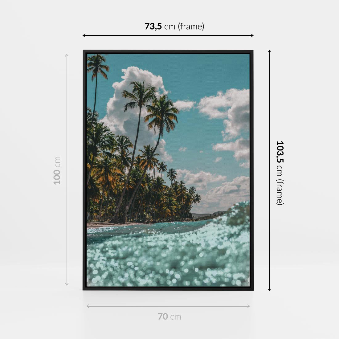 Obraz w ramie 70x100 - Rajskie Wakacje - plaża, palmy - rama czarna